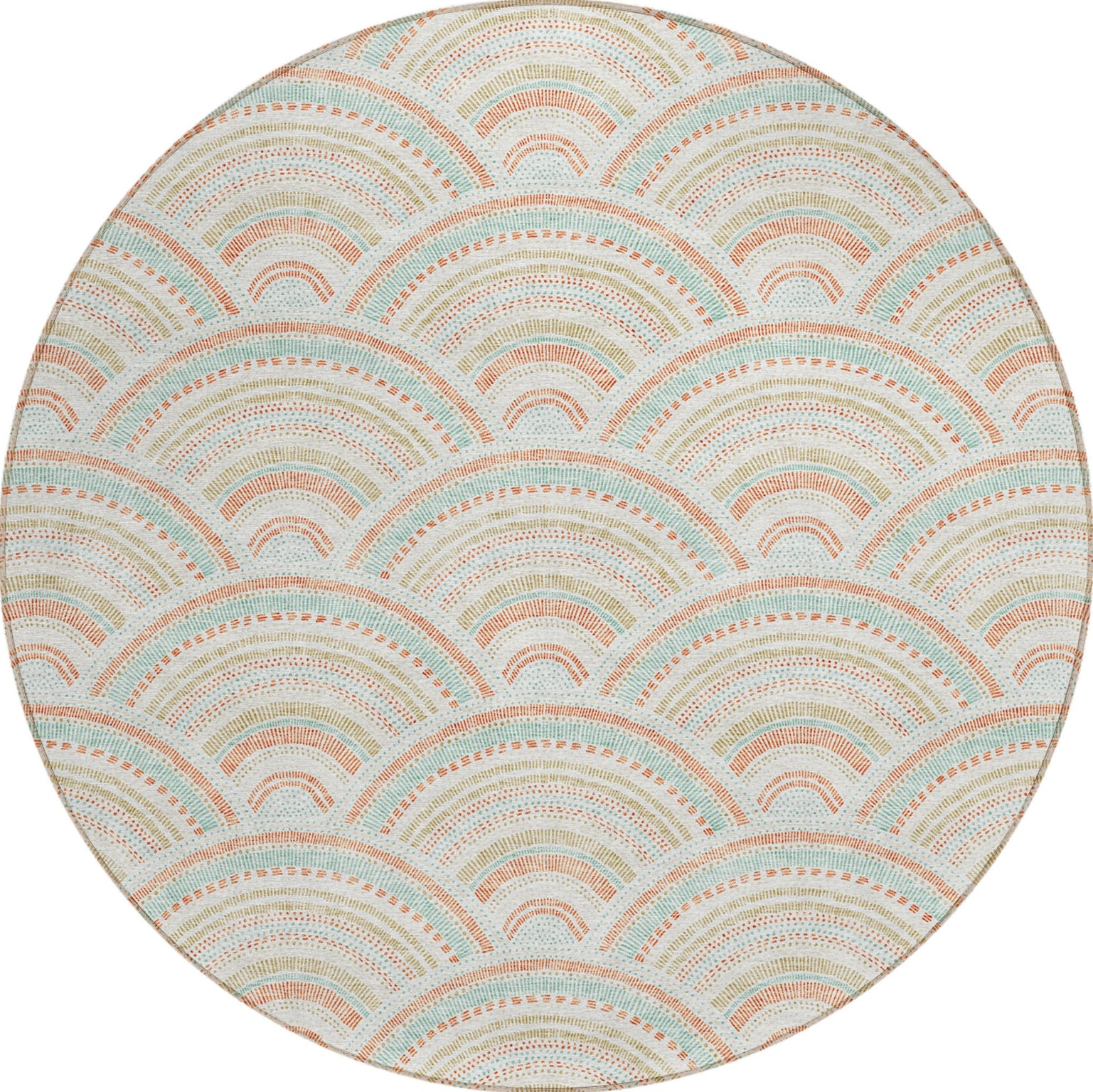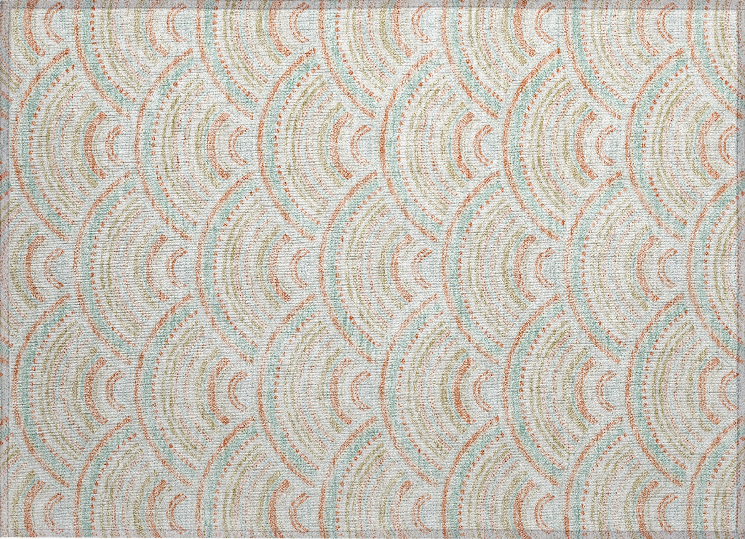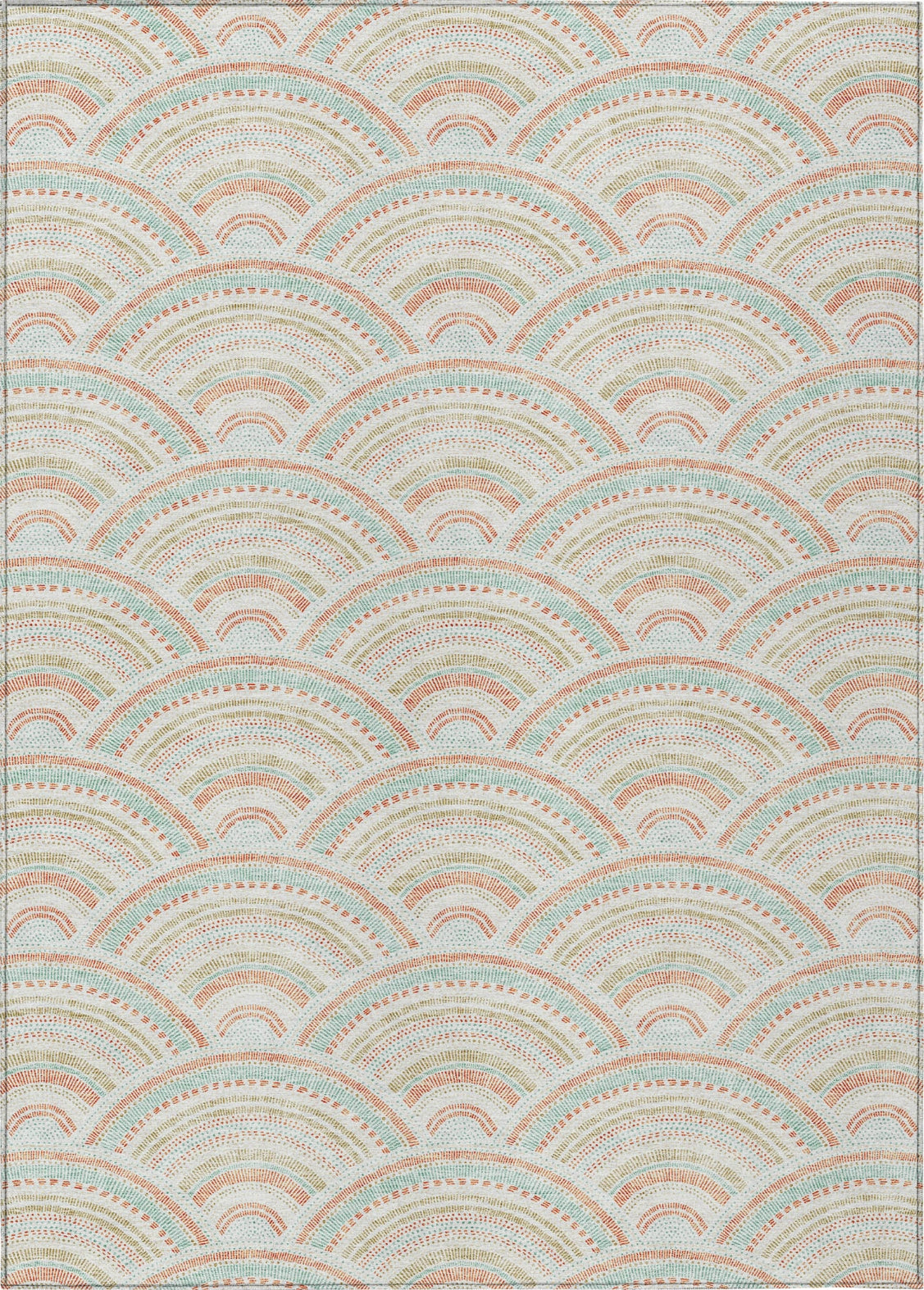 Our area rug, with its distinctive semi-circle elements, sets the tone for a modern yet transitional ambiance in any space. It's designed to withstand the rigors of both indoor and outdoor use with UV stabilization and features an ultra-thin, machine-washable construction that families with pets will find invaluable.