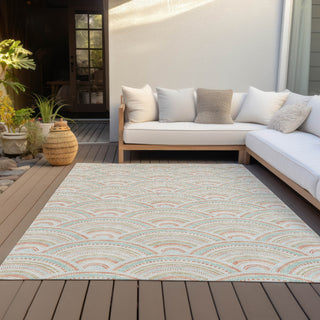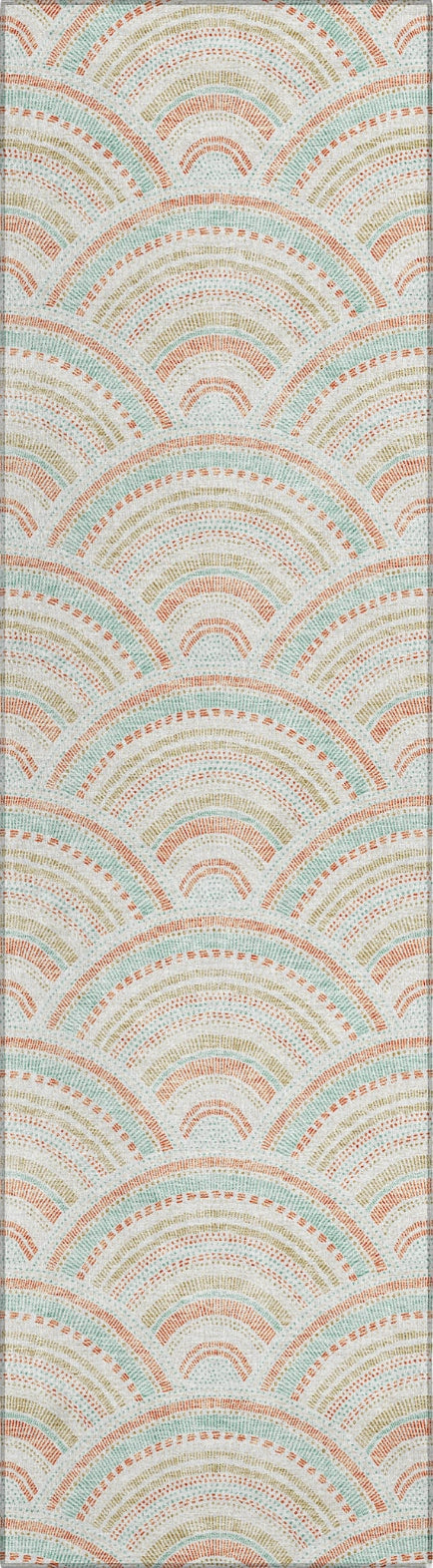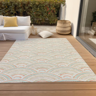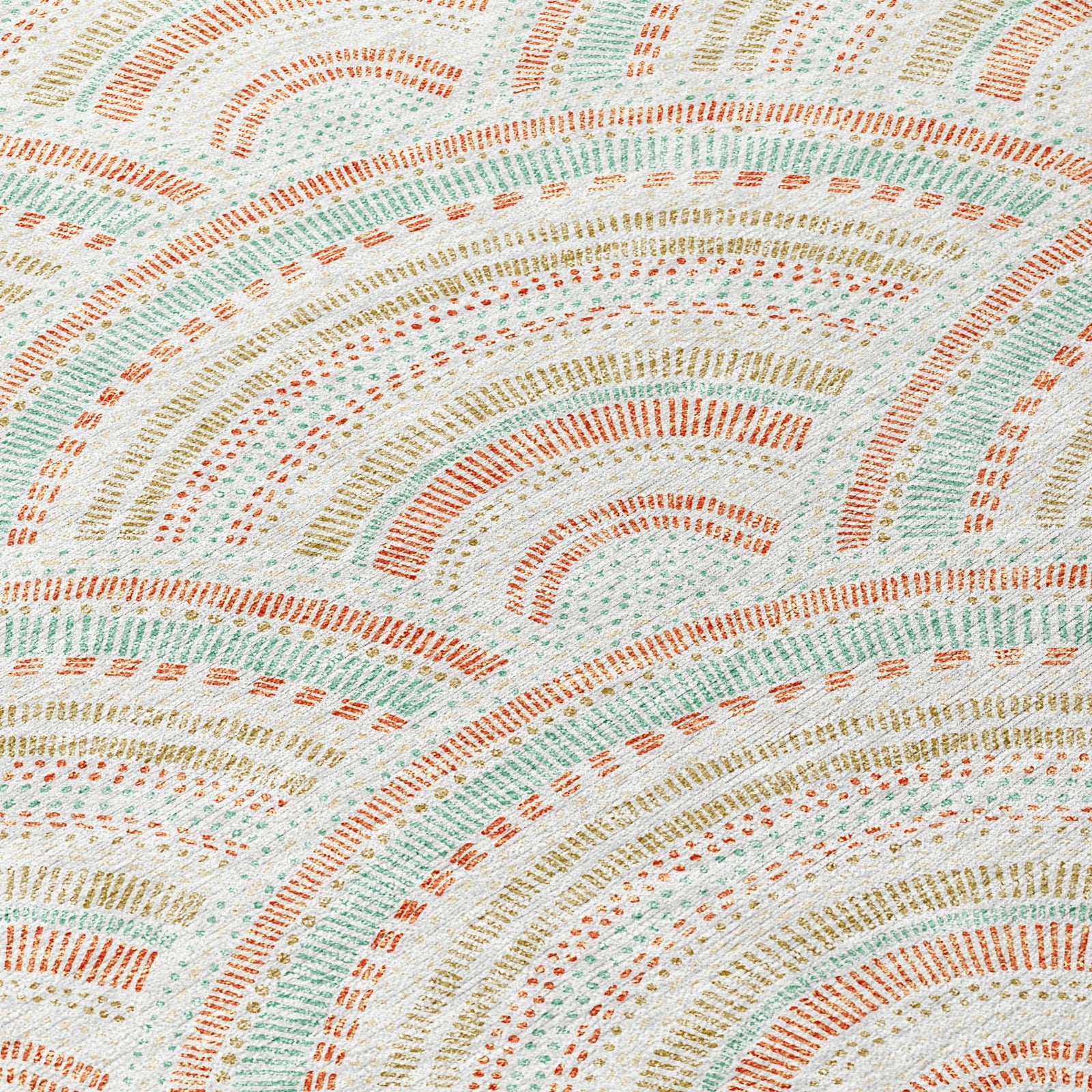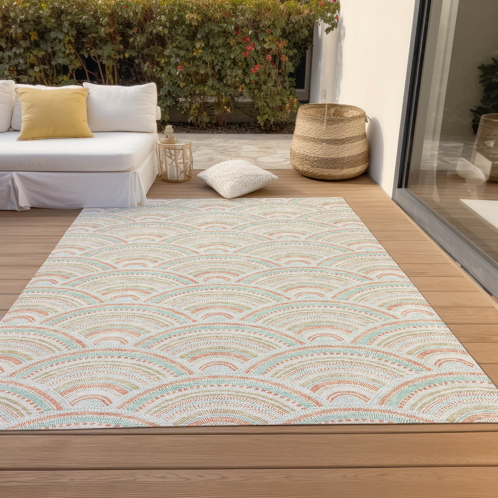 Our area rug, with its distinctive semi-circle elements, sets the tone for a modern yet transitional ambiance in any space. It's designed to withstand the rigors of both indoor and outdoor use with UV stabilization and features an ultra-thin, machine-washable construction that families with pets will find invaluable.