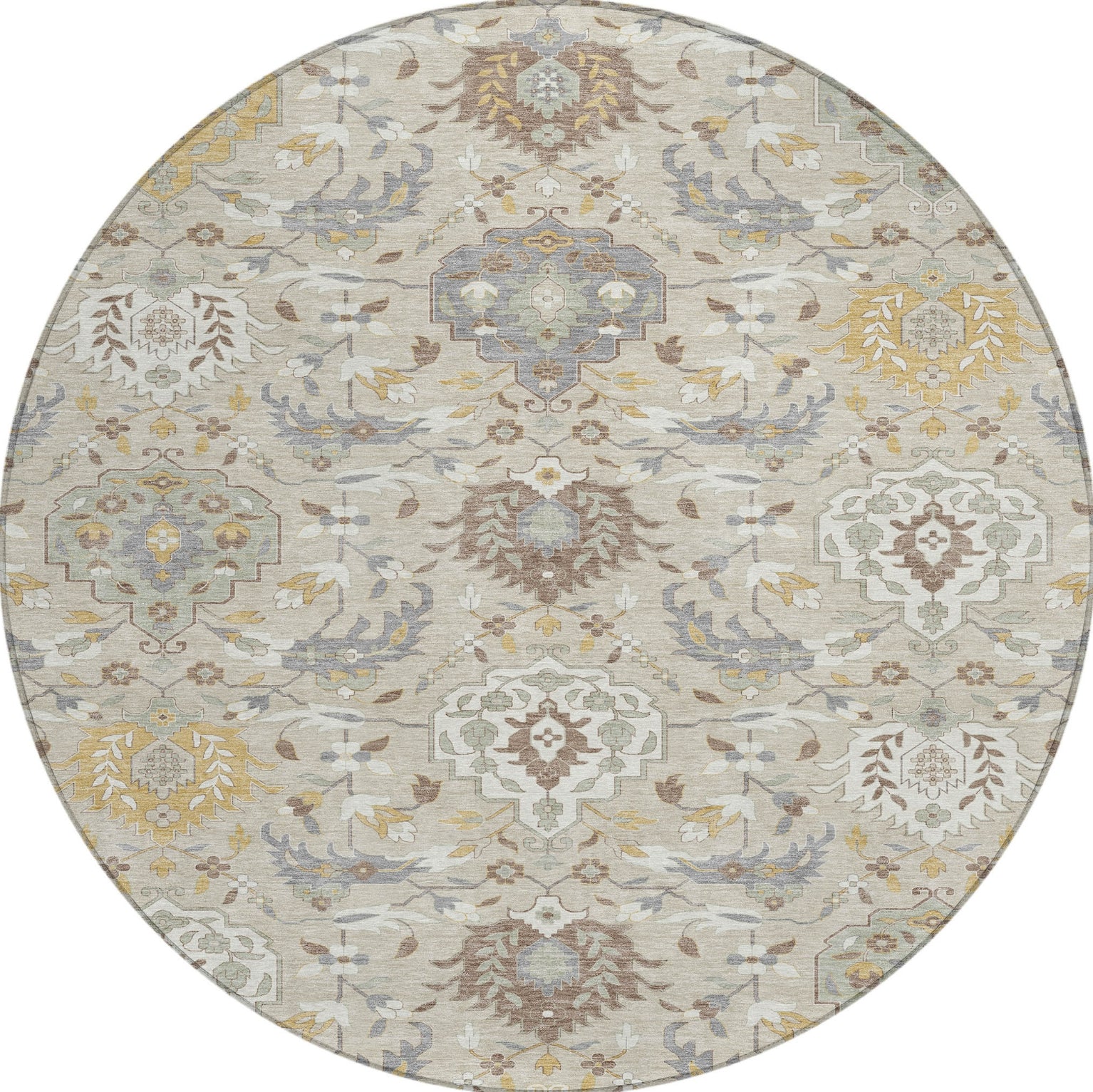 Elevate your decor with our area rug, where large-scaled damask medallions provide a traditional and luxurious feel. This damask pattern not only enriches your home but also brings a historical elegance. Tailored for versatile use, the rug is UV stabilized for indoor and outdoor environments, ultra-thin for effortless placement, and machine-washable for easy upkeep in any family- and pet-friendly setting.