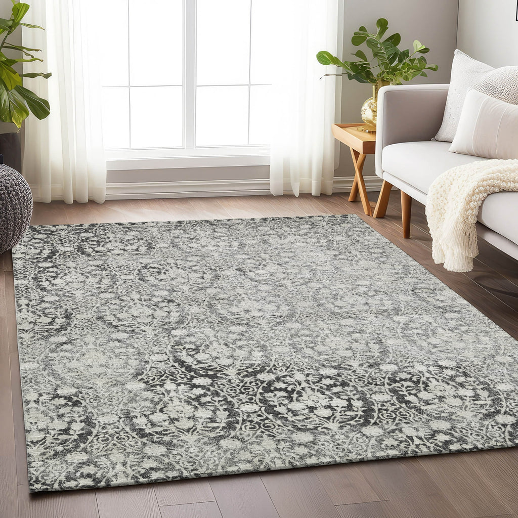 Piper Looms Chantille Damask ACN1231 Charcoal Machine Washable Area Rug
