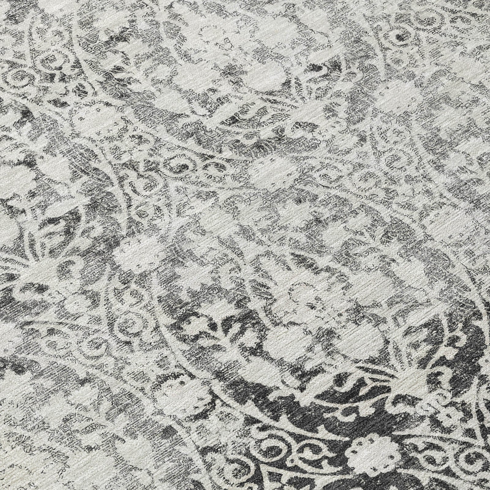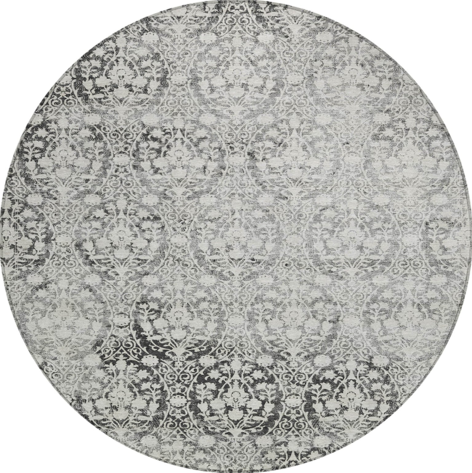 With very intricate damask details, this rug delivers a transitional style that complements both contemporary and classic interiors. The damask pattern is rich and sophisticated, enhancing the look of any room. UV stabilized for versatility, it's perfect for indoor or outdoor use. The ultra-thin profile ensures it lays flat, and it's machine-washable for easy maintenance. Ideal for homes with children and pets, this rug combines elegance and durability.