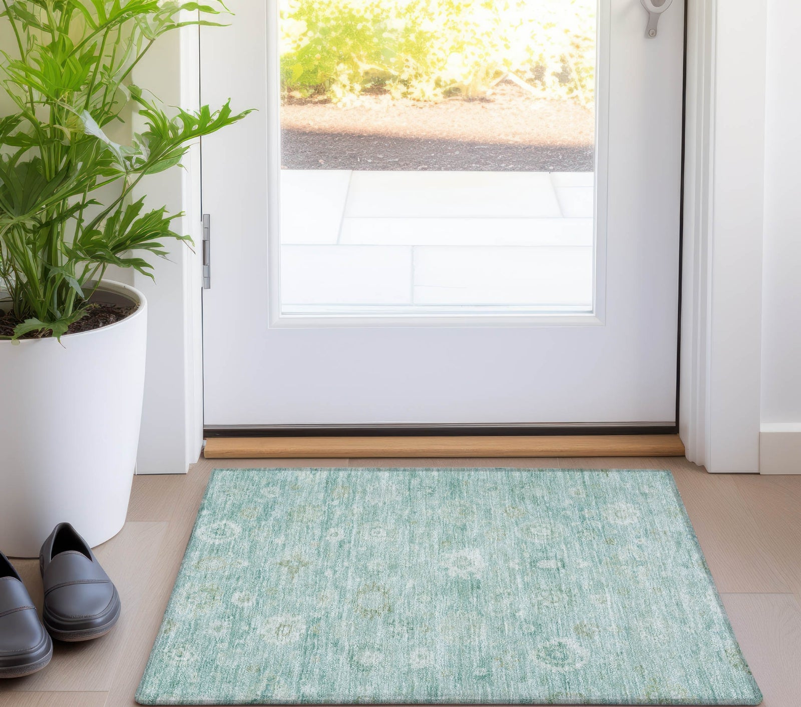 The delicate, small-scale damask motifs in this rug provide a refined look that adds depth and texture without overwhelming the room. The soft pattern adds a sense of elegance, while its transitional style ensures it blends seamlessly into both contemporary and traditional interiors. This UV-stabilized rug is designed for both indoor and outdoor use, with an ultra-thin construction that makes it easy to manage and maintain. Machine-washable for convenience, it's also family and pet-friendly, ensuring it holds up to daily traffic and activity. Bring effortless style and durability to your space with this versatile rug.