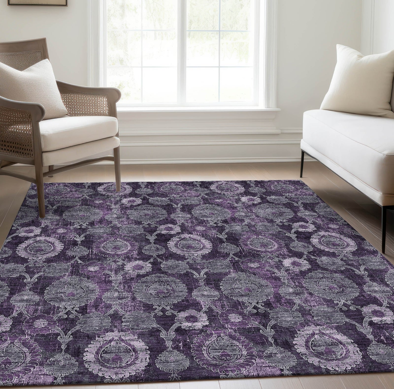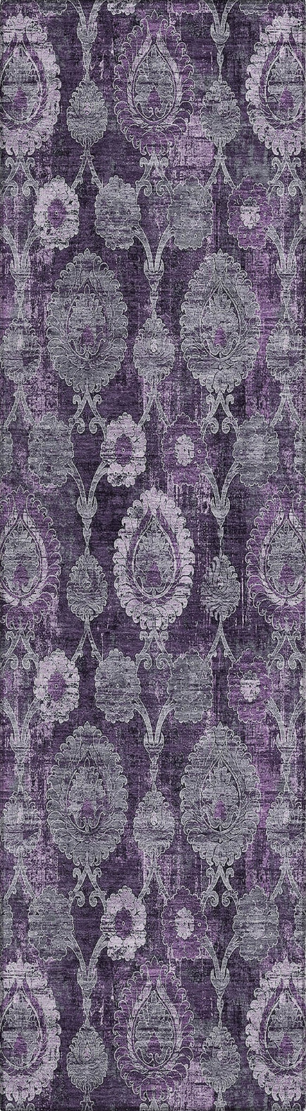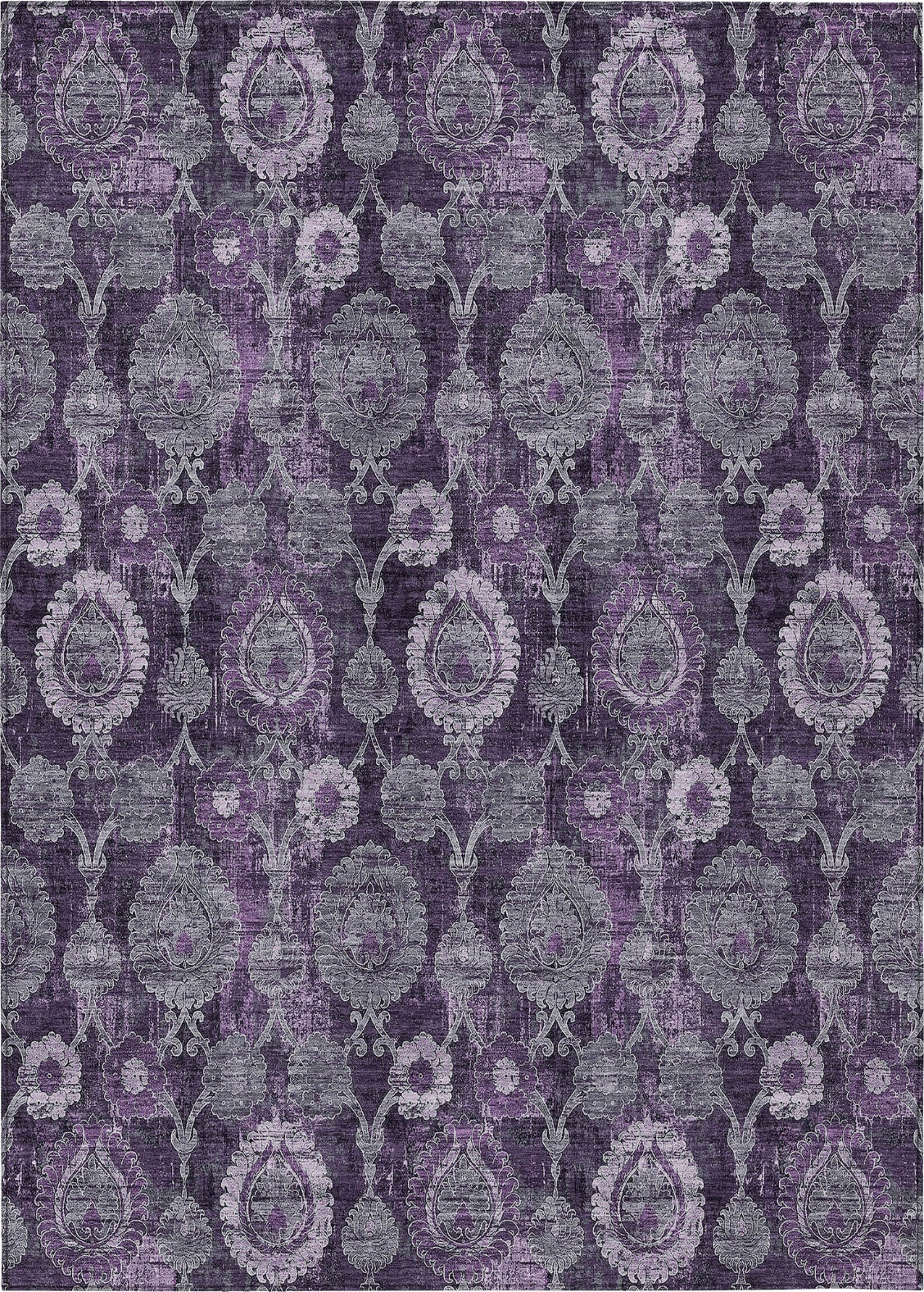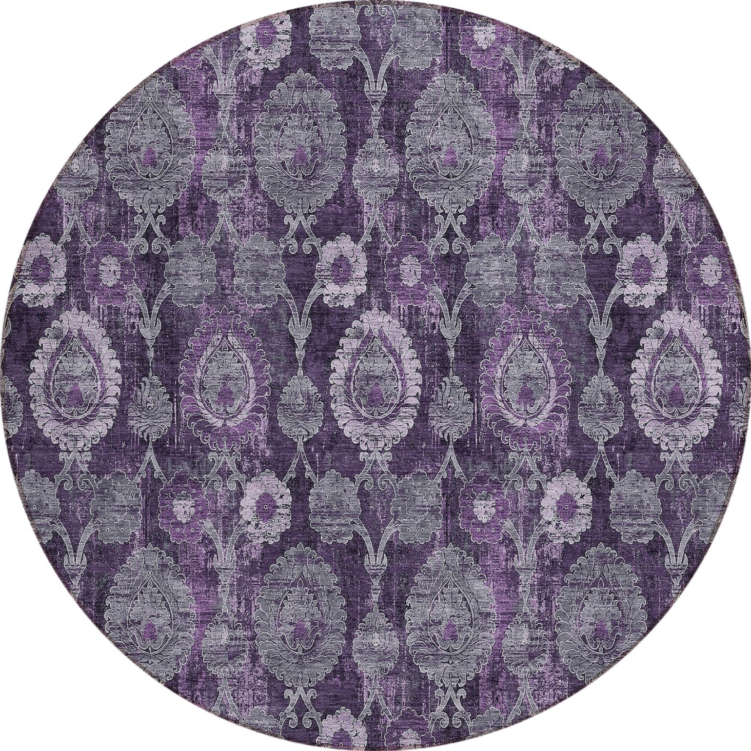 Piper Looms Chantille Damask ACN821 Eggplant Machine Washable Area Rug