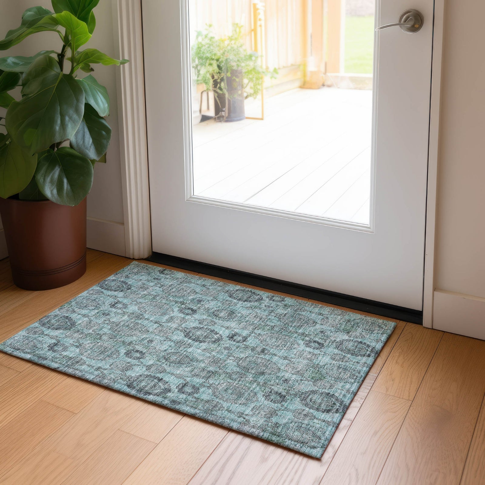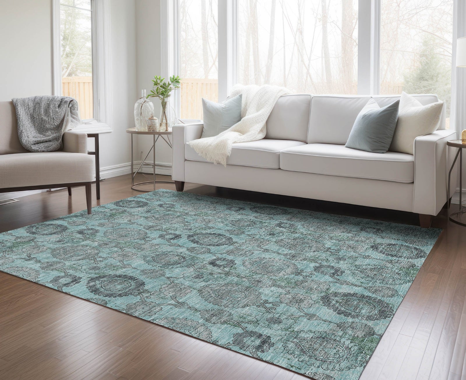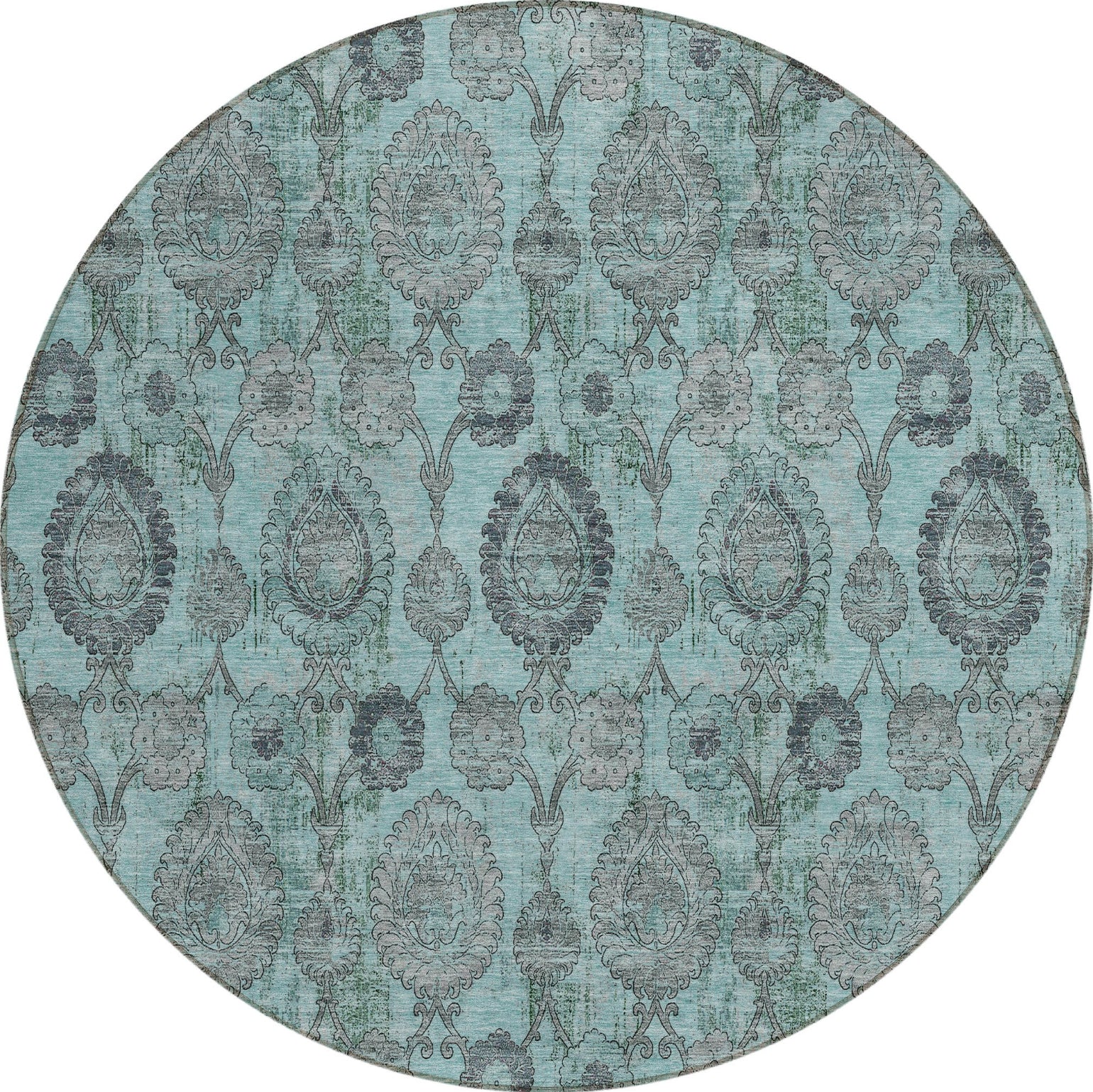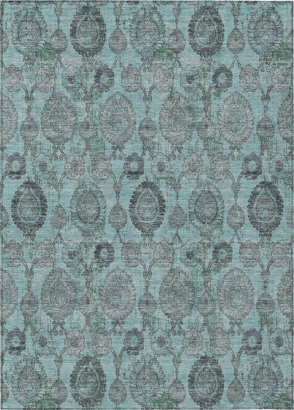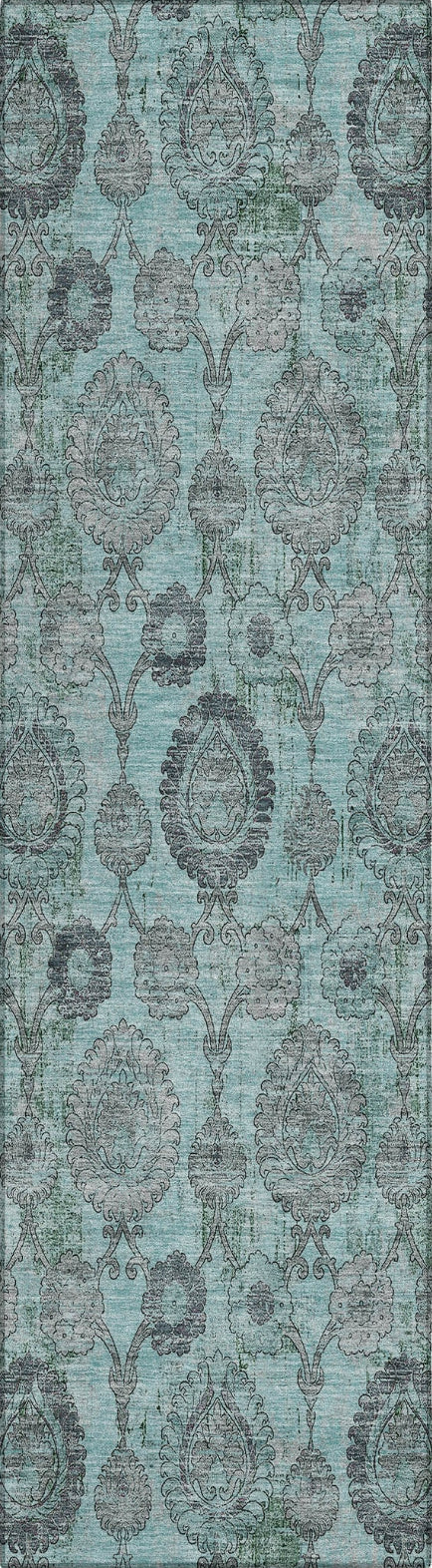 Piper Looms Chantille Damask ACN821 Turquoise Machine Washable Area Rug