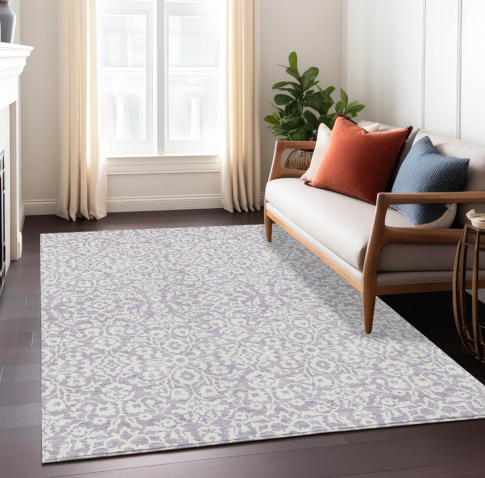 Piper Looms Chantille Damask ACN920 Lavender Machine Washable Area Rug