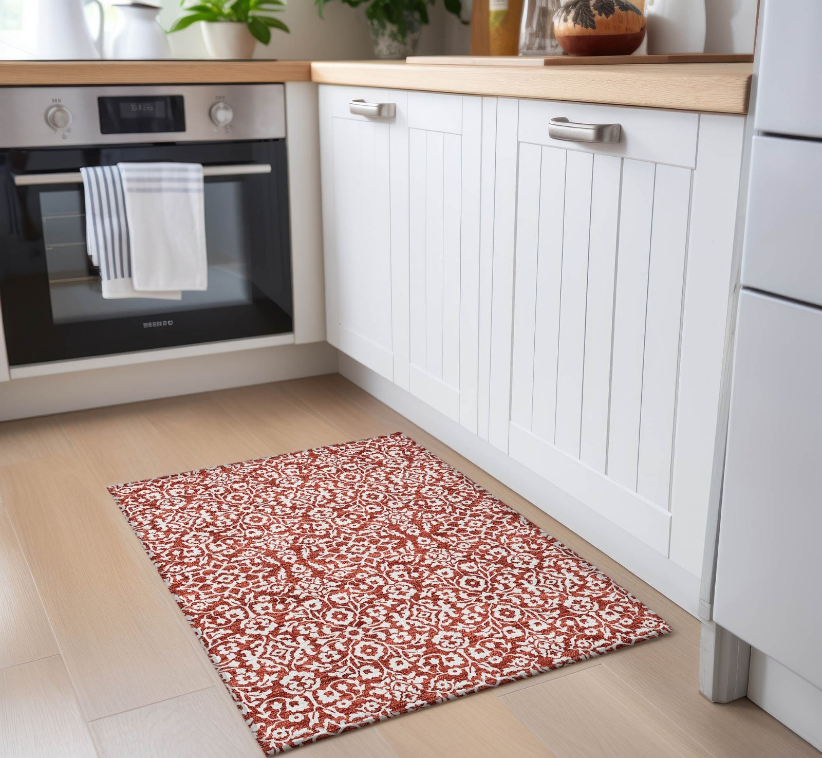 Piper Looms Chantille Damask ACN920 Red Machine Washable Area Rug