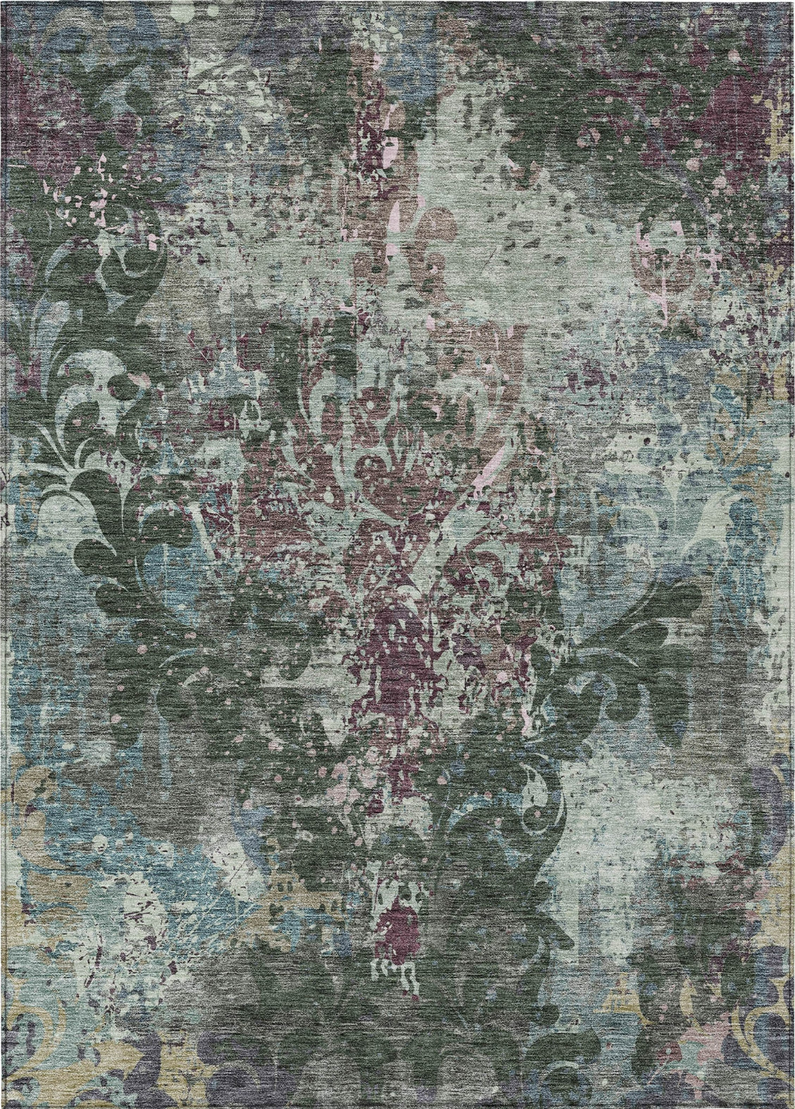 Piper Looms Chantille Damask ACN936 Fern Machine Washable Area Rug