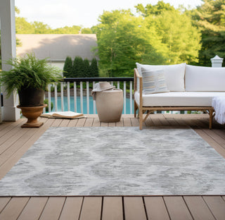 The diamond pattern on this rug, interlaced with trails of brushed monotone colors, brings a refined and transitional touch to any space. It's an ideal blend of contemporary and classic styles, making it a versatile decor piece. This rug is UV stabilized for indoor and outdoor use, ultra-thin for a sleek appearance, machine-washable for hassle-free maintenance, and perfect for pet and family-friendly homes.