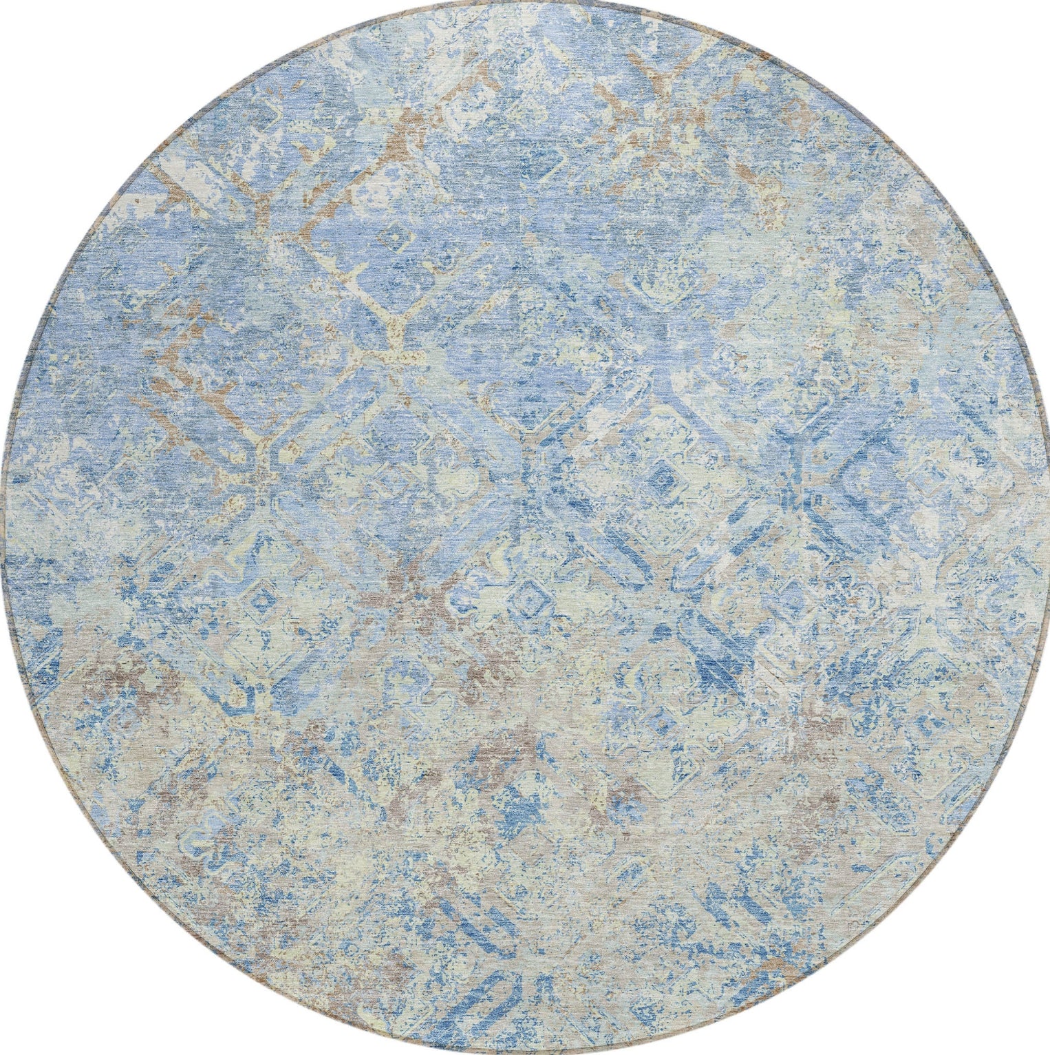 The unique lattice type diamonds on this rug create an enchanting flow of color to its center, embodying the beauty of transitional design. The diamond shapes offer a refined and inviting atmosphere to any room. Boasting UV stabilization, an ultra-thin build, machine-washability, and suitability for pets and families, it's a top choice for stylish, functional homes.