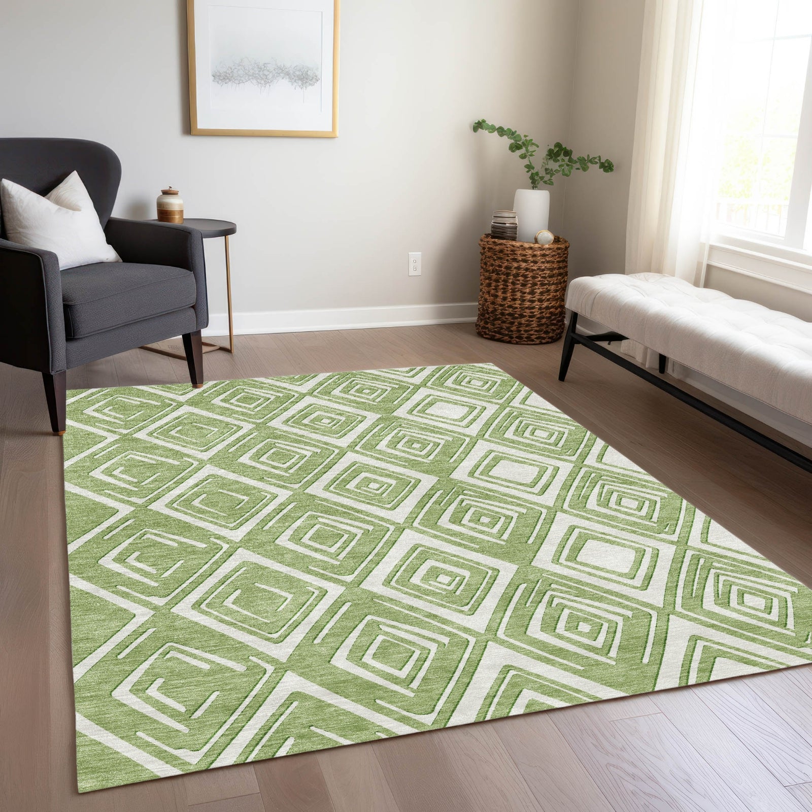 Piper Looms Chantille Diamonds ACN862 Green Machine Washable Area Rug