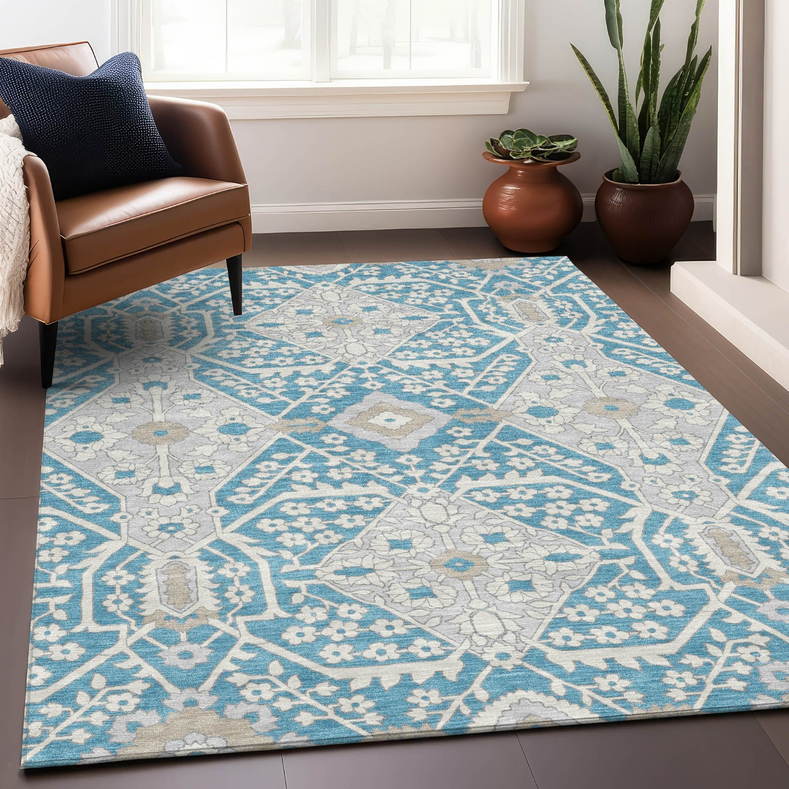 Piper Looms Chantille Diamonds ACN863 Teal Machine Washable Area Rug