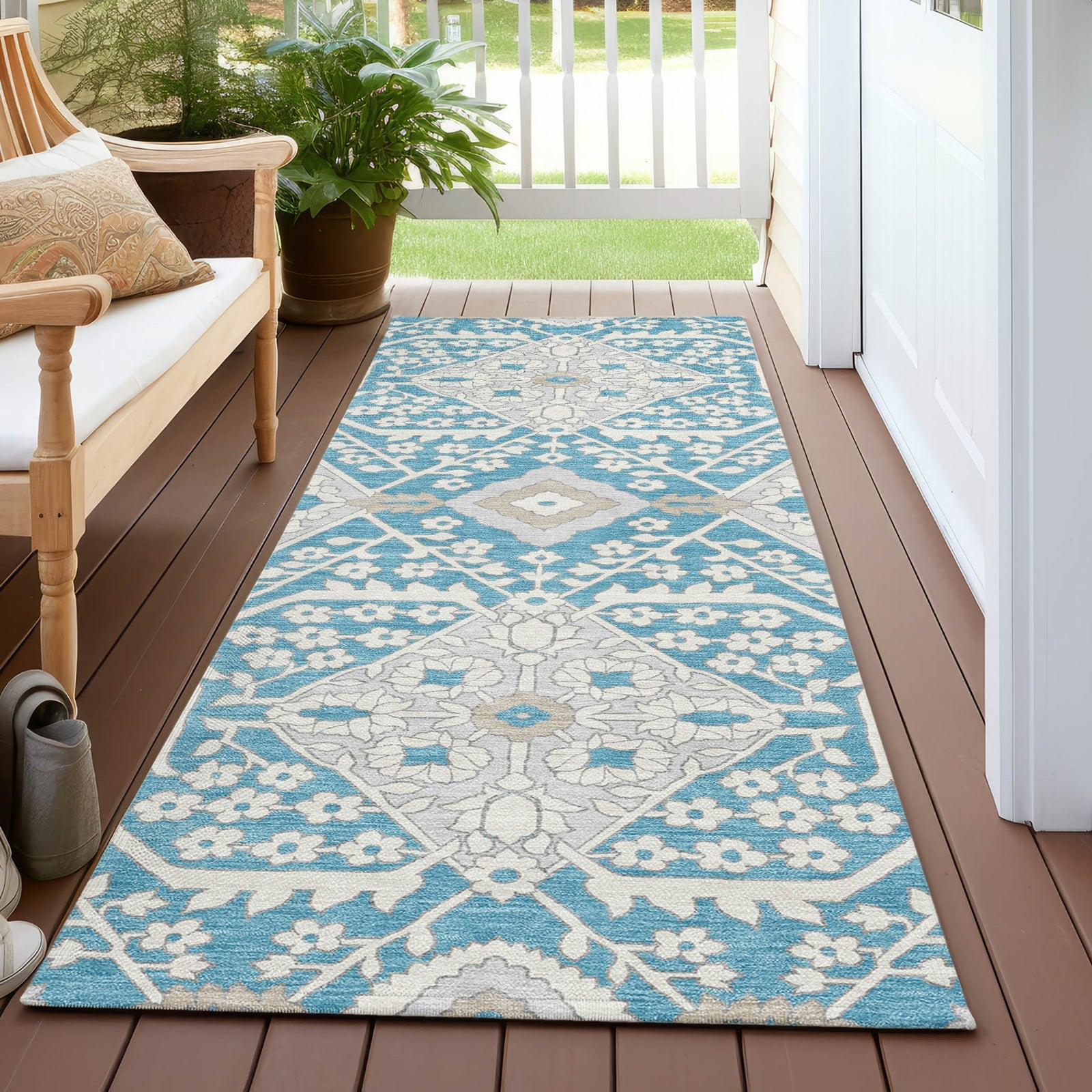Redefine your interior with this area rug, which offers a contemporary update on the Agra pattern, accented with oversized diamonds for a sleek, transitional aesthetic. The diamond design adds a touch of modern sophistication to your decor. This rug is also exceptionally practical, featuring UV stabilization for indoor or outdoor use, an ultra-thin build for flexible placement, machine-washable fabric for easy maintenance, and a family and pet-friendly design, perfect for everyday living.