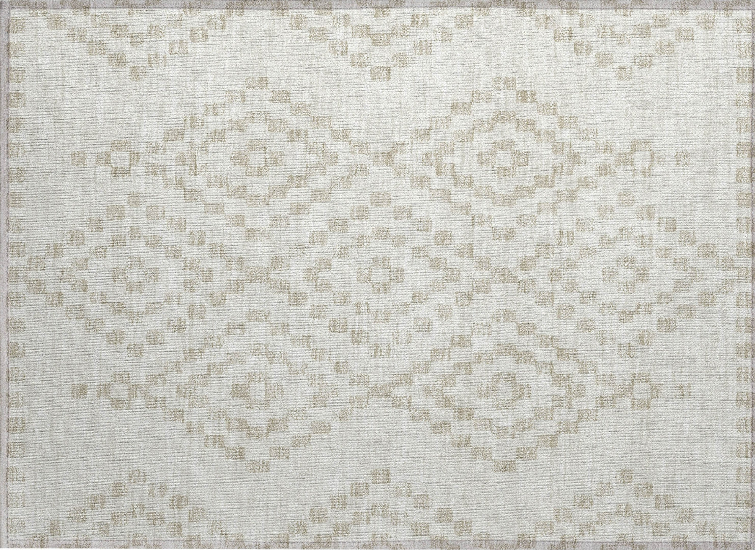 ''''Our area rug showcases a centered diamond pattern with a needlepoint-inspired feel, offering a blend of transitional style and timeless beauty. The diamond detailing adds a classic touch, and the rug's practical features make it an ideal choice: UV stabilized for any setting, ultra-thin for smooth integration, machine-washable for straightforward maintenance, and family- and pet-friendly.''''