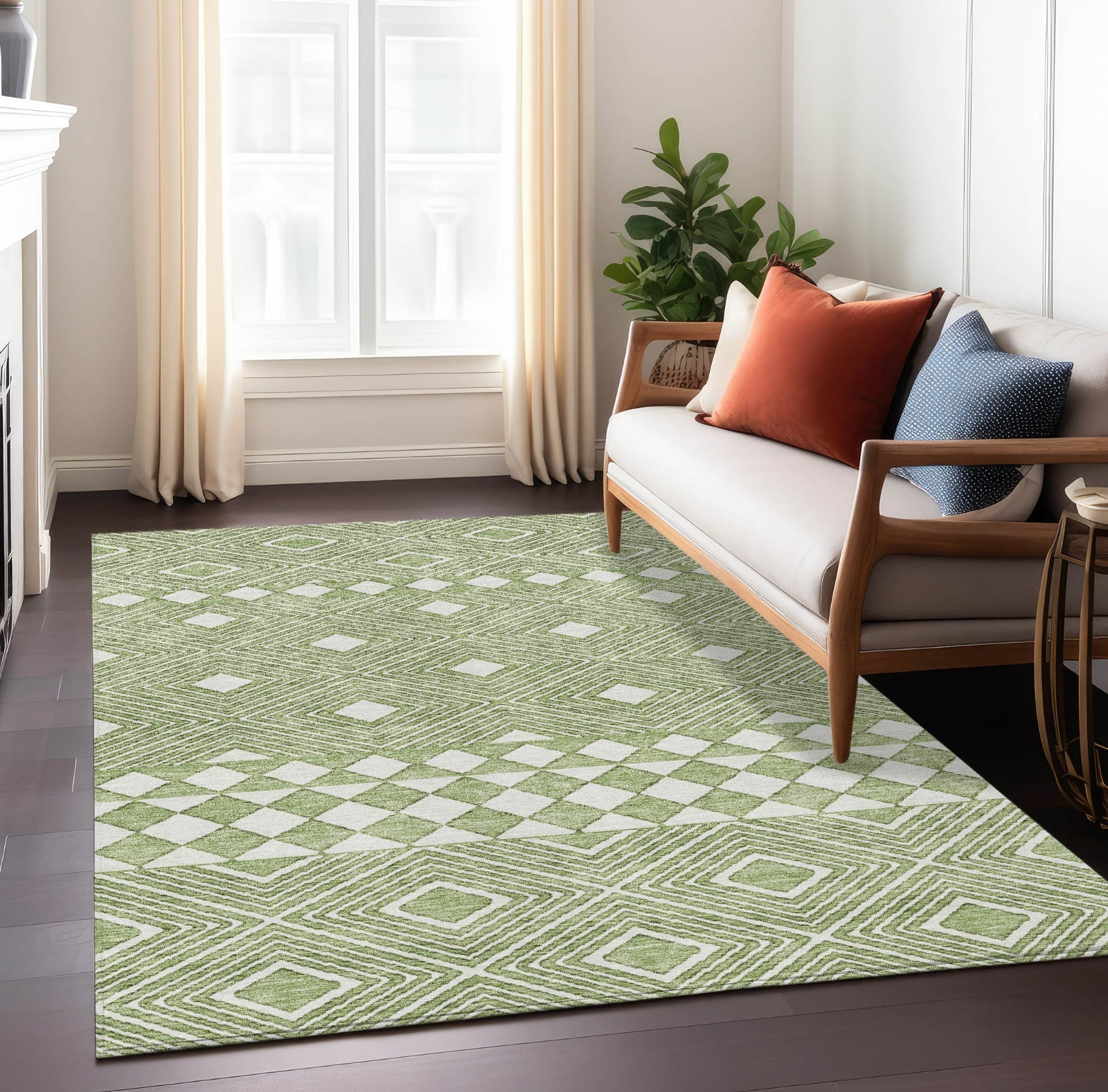 Piper Looms Chantille Diamonds ACN898 Green Machine Washable Area Rug