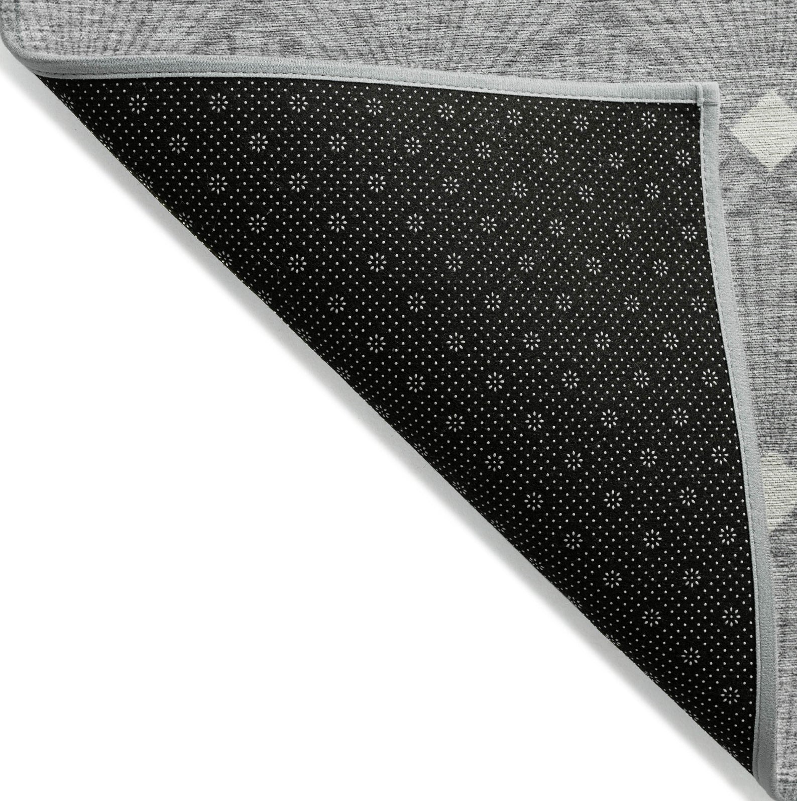 This area rug's design of small scaled diamonds anchored by a small square creates a transitional and diamond-inspired charm. UV stabilized for both indoor and outdoor use, it's incredibly versatile. The ultra-thin construction ensures it fits easily into any room, and being machine-washable, it's perfect for family and pet-friendly homes.