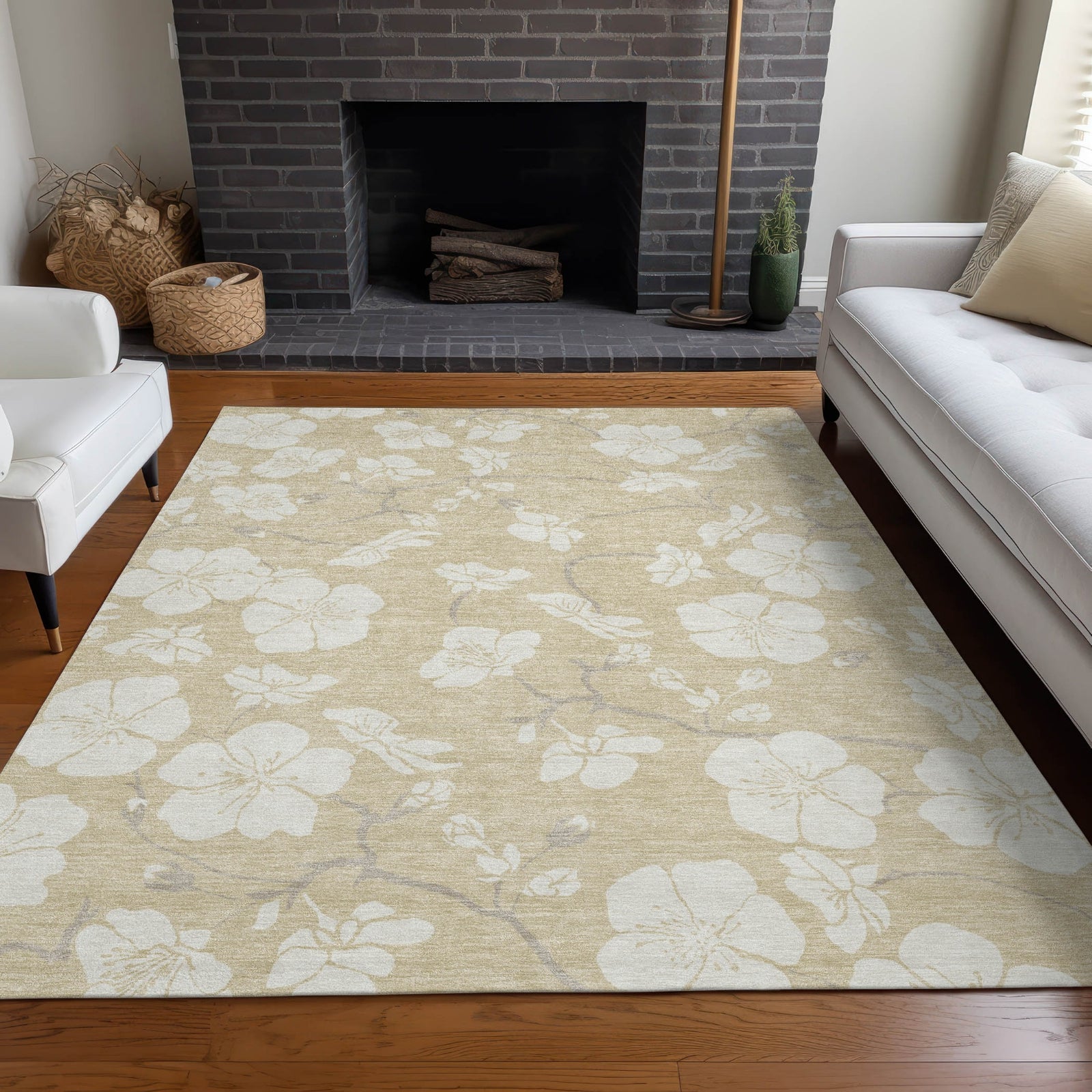 Piper Looms Chantille Floral ACN1032 Beige Machine Washable Area Rug