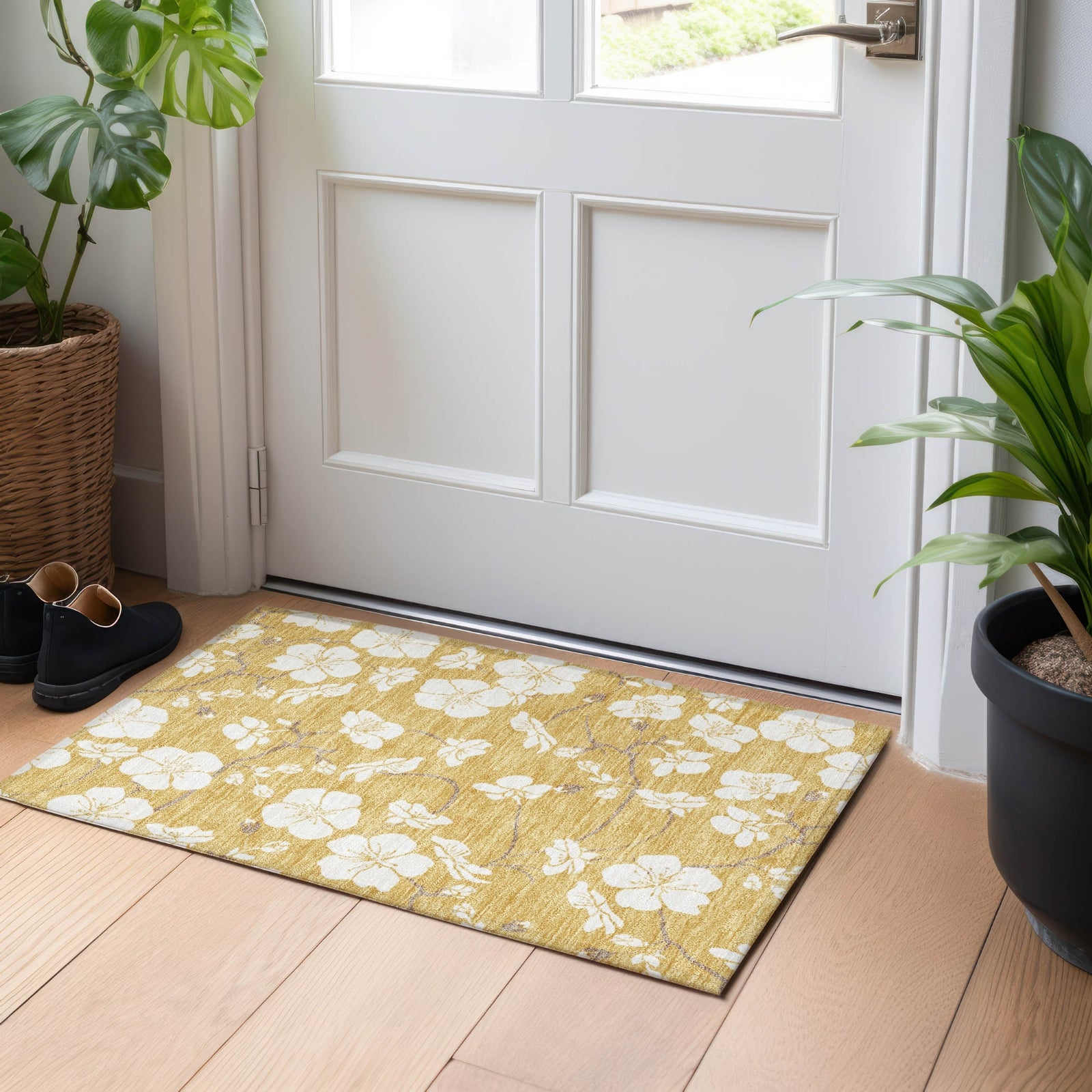 Piper Looms Chantille Floral ACN1032 Gold Machine Washable Area Rug