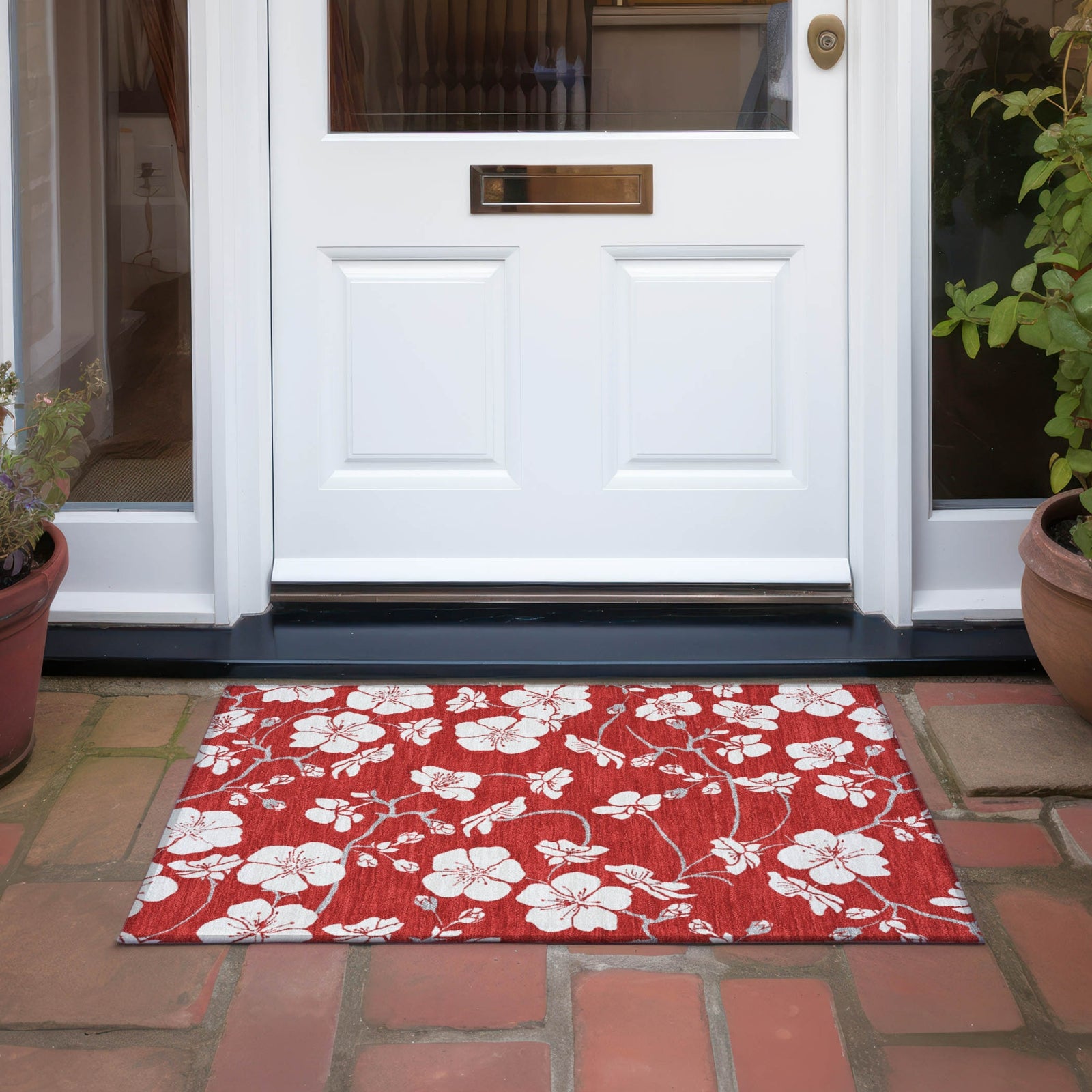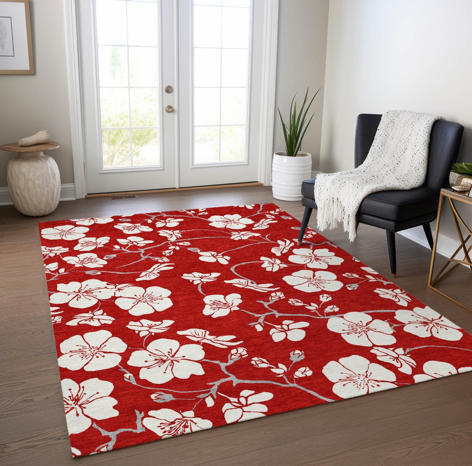 Piper Looms Chantille Floral ACN1032 Red Machine Washable Area Rug