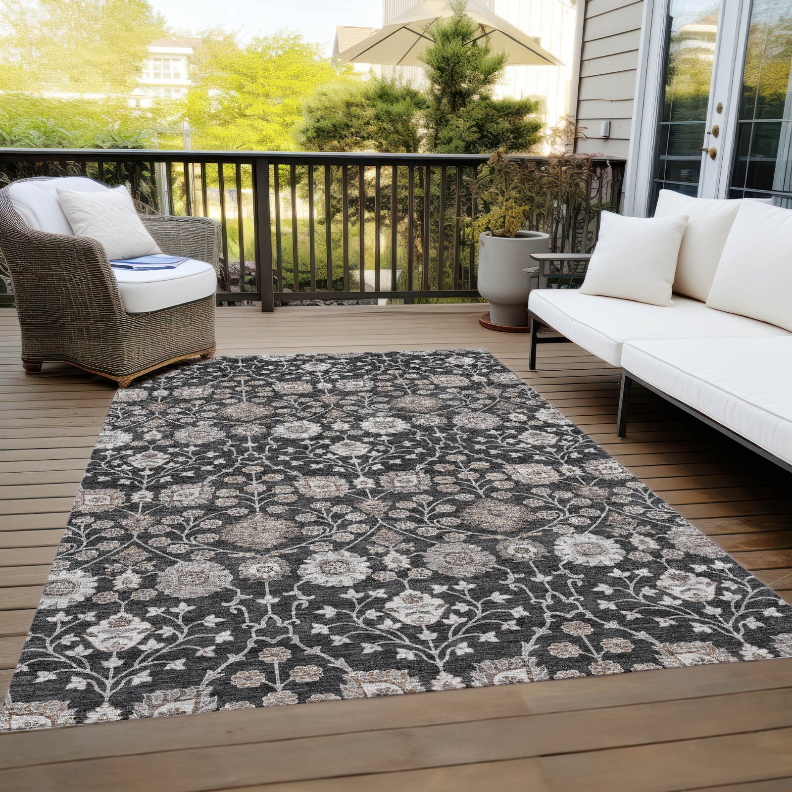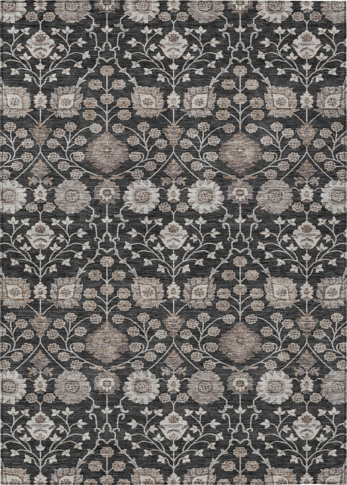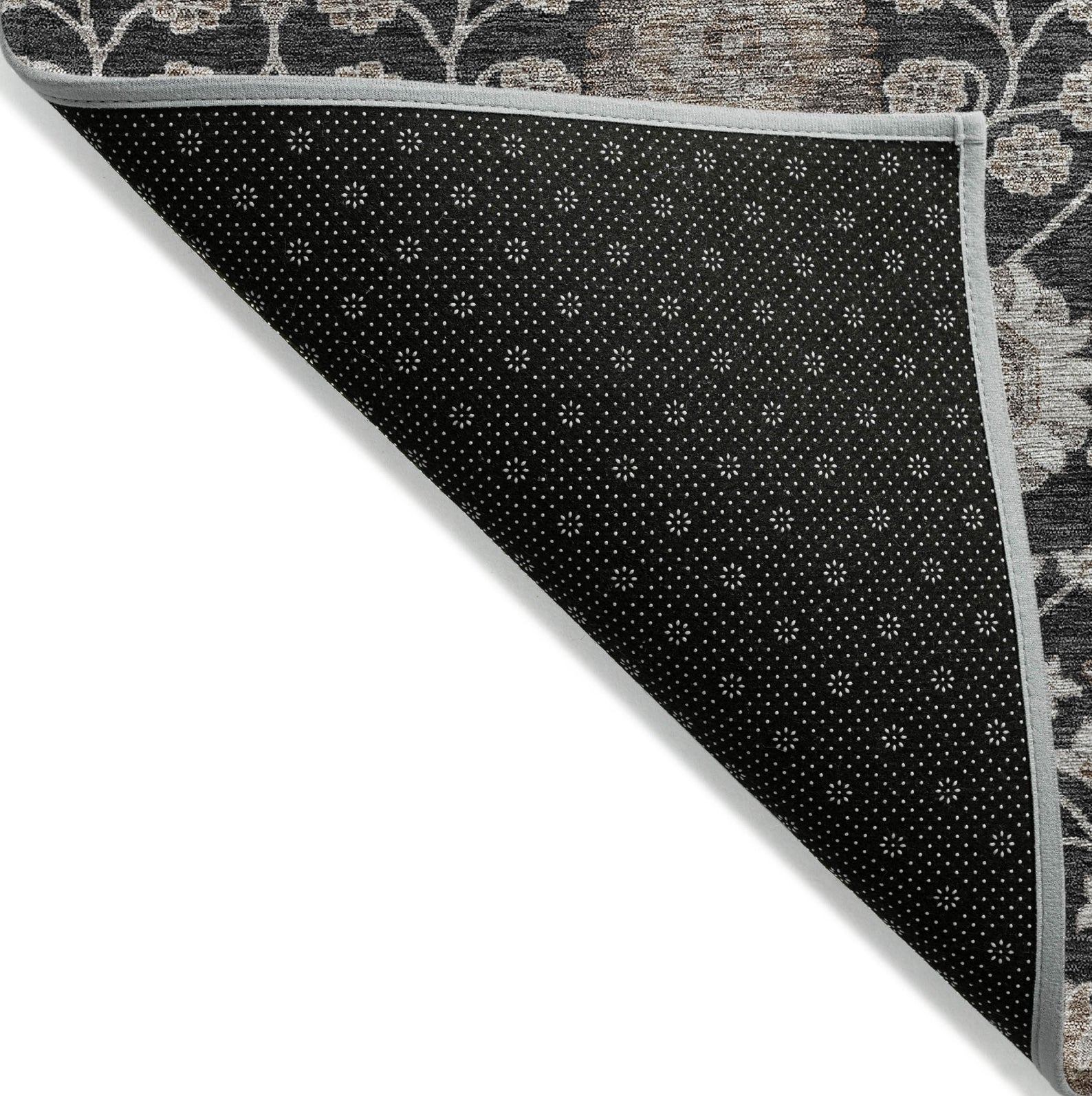 Piper Looms Chantille Floral ACN1155 Black Machine Washable Area Rug