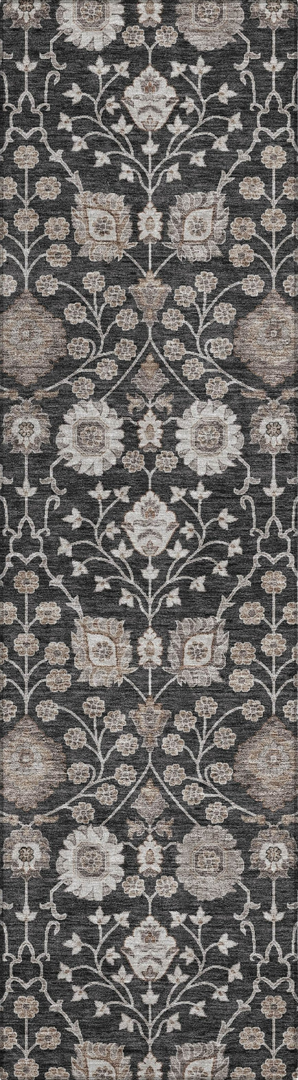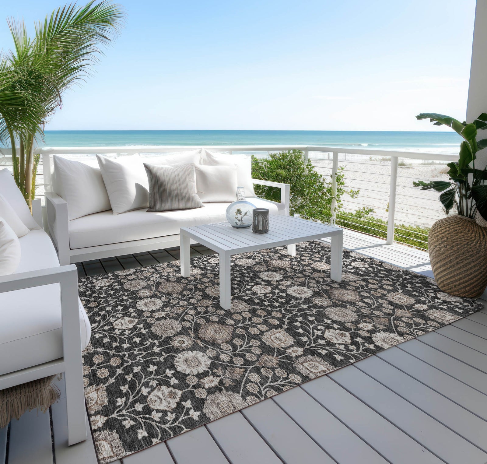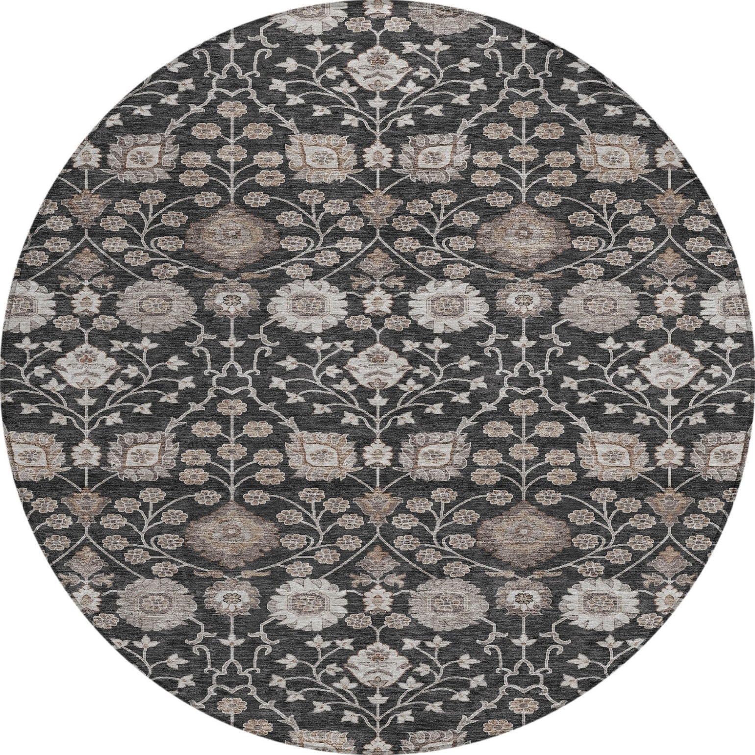Piper Looms Chantille Floral ACN1155 Black Machine Washable Area Rug