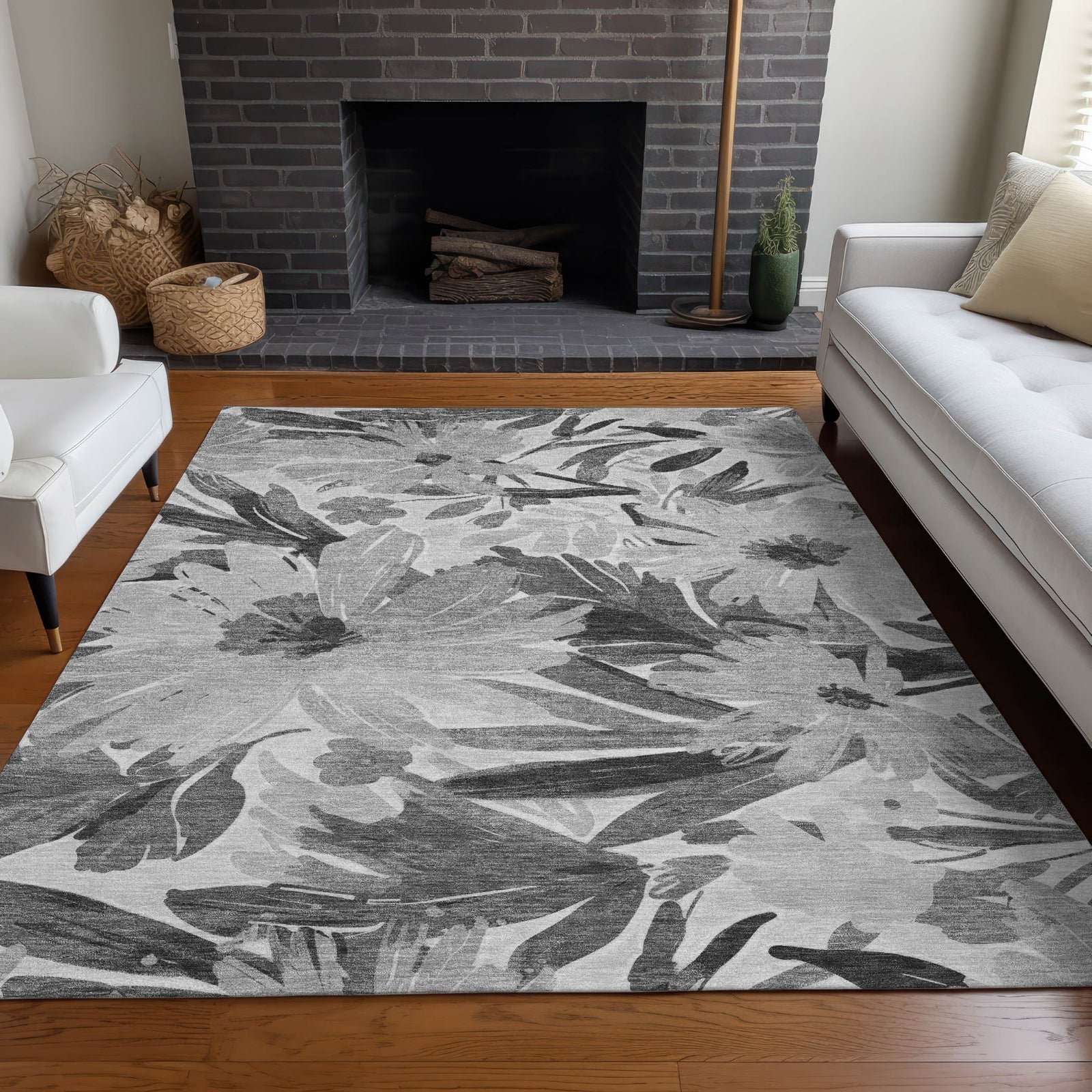 Piper Looms Chantille Floral ACN1483 Gray Machine Washable Area Rug