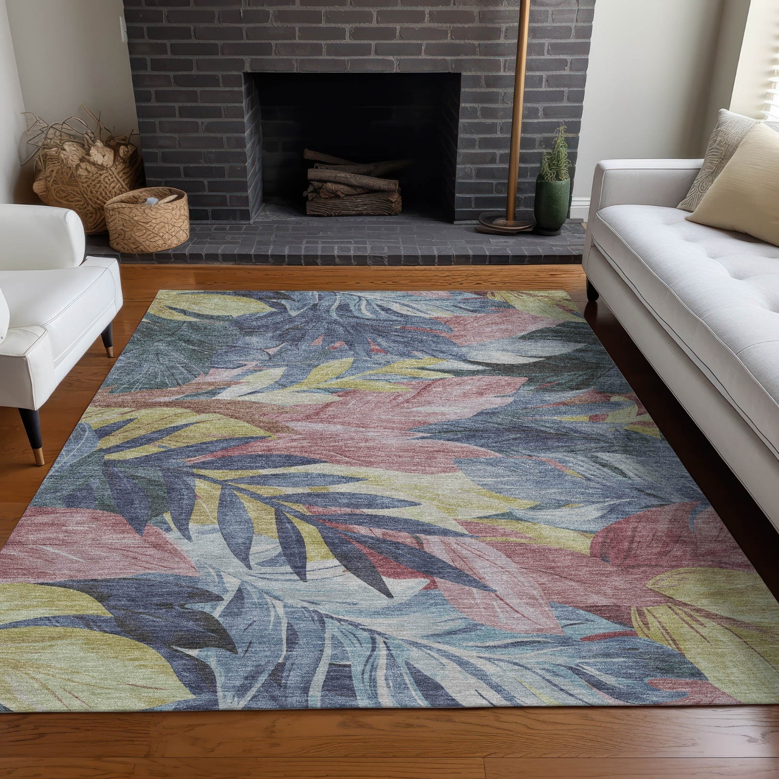 Bring the exotic charm of overlapping leaves into your home with this transitional rug. The floral pattern creates a tropical vibe that refreshes any decor. UV stabilized for both indoor and outdoor use, it features ultra-thin construction. This machine-washable rug is family and pet-friendly, providing durability and ease of care.