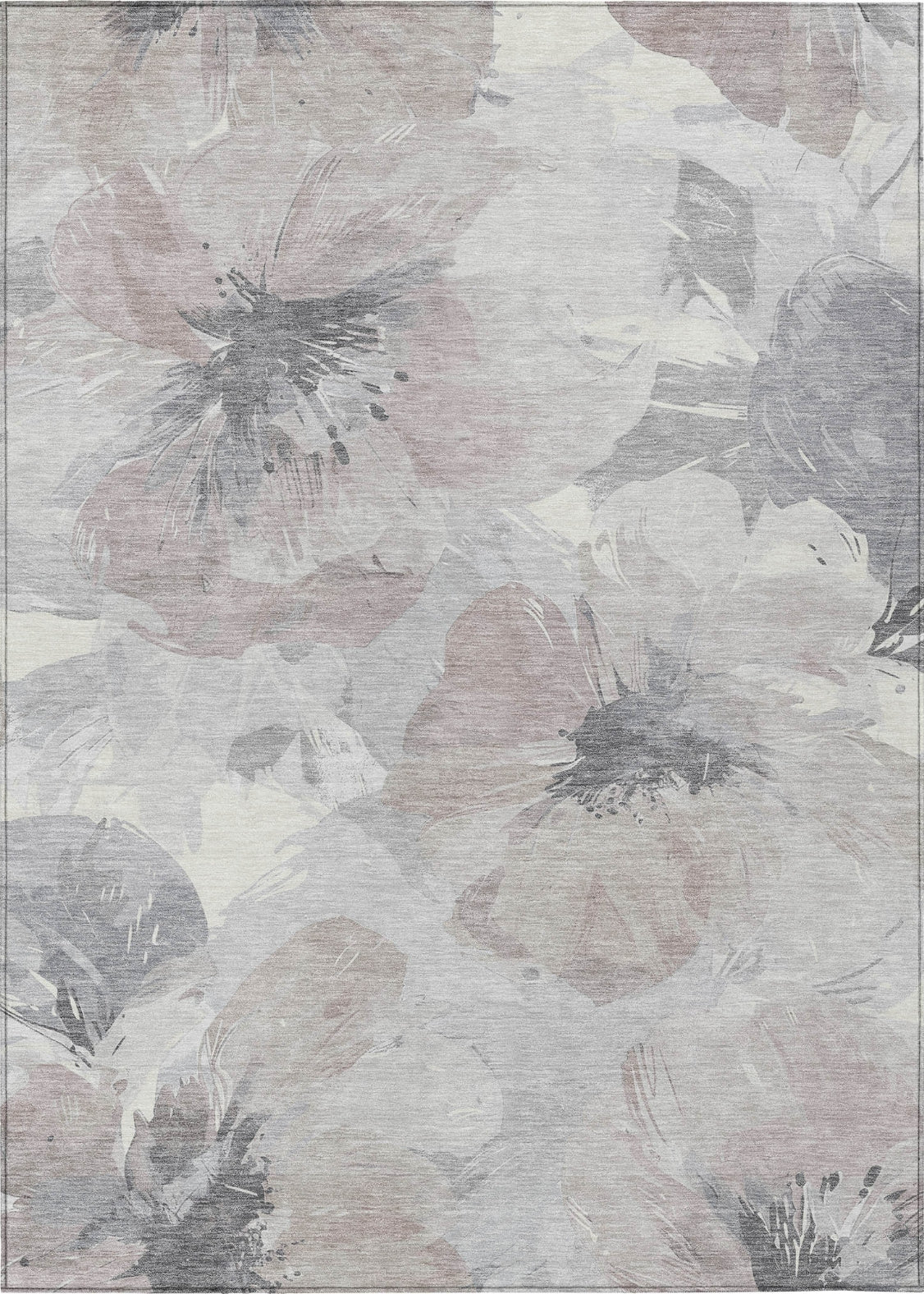 Refresh your space with this transitional rug, featuring large scaled flower petals in soft flowing shadows. The floral pattern brings a vibrant and innovative touch to your decor. UV stabilized for versatile use, it boasts ultra-thin construction. This machine-washable rug is perfect for busy households, being both family and pet-friendly.