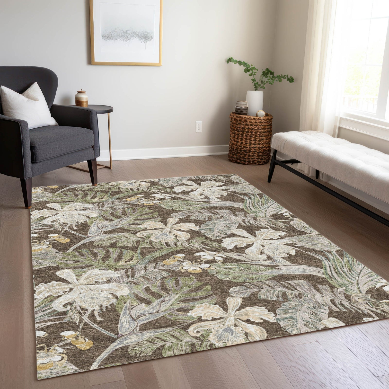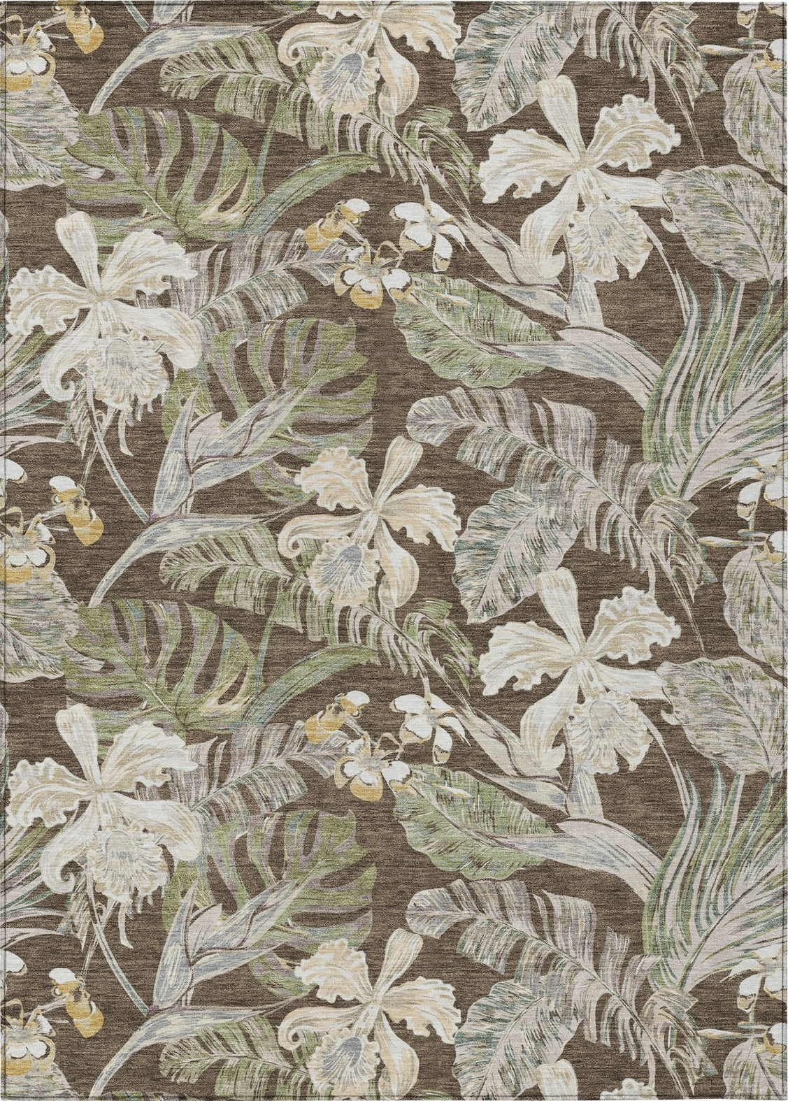 Piper Looms Chantille Floral ACN1708 Brown Machine Washable Area Rug