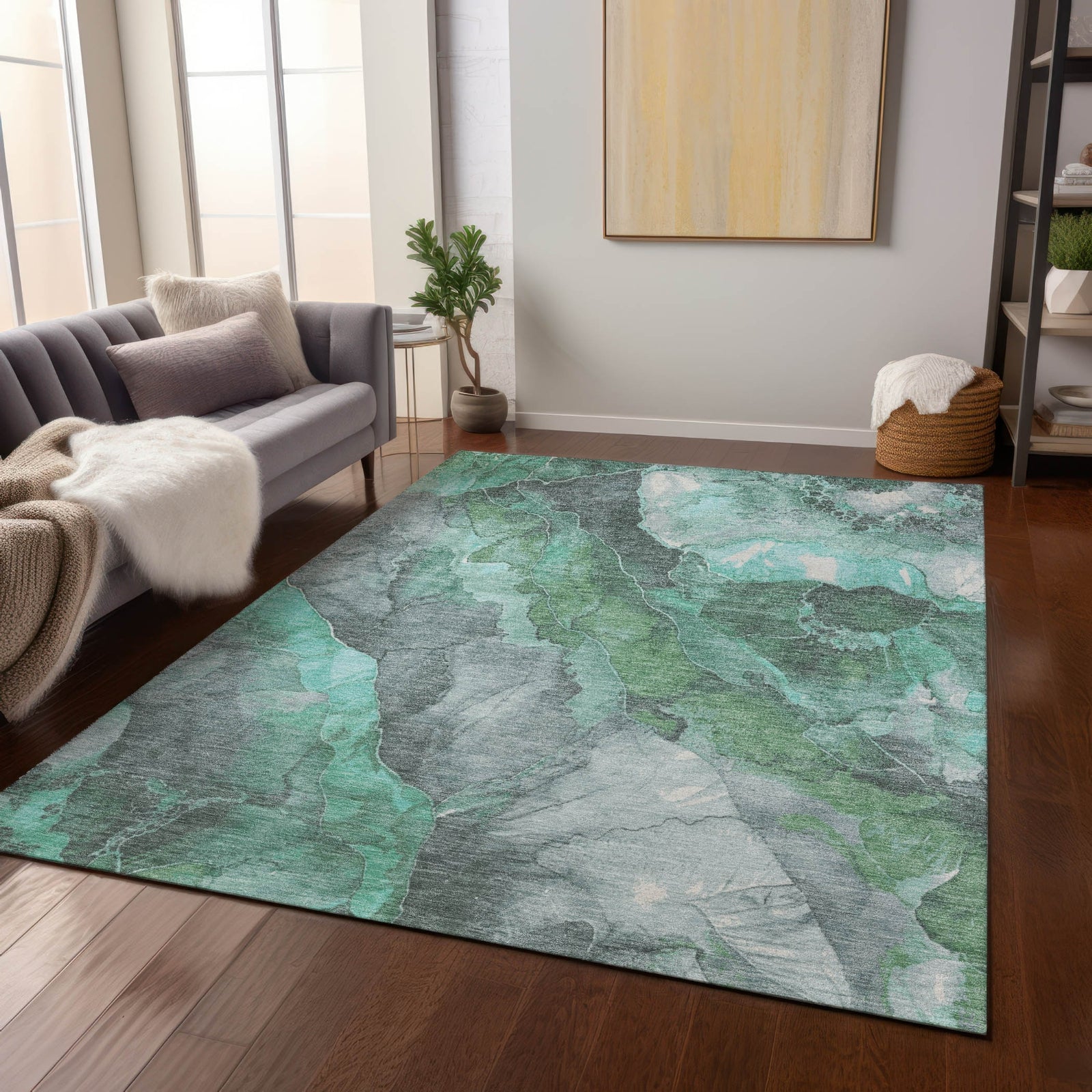 Piper Looms Chantille Floral ACN1787 Teal Machine Washable Area Rug