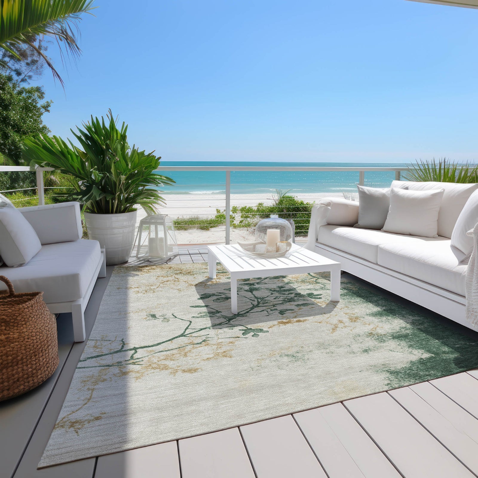 Floral branches stretch from one corner of the rug to the other, creating a flowing, nature-inspired design that softens any room. The transitional style bridges contemporary and traditional elements, making this rug a versatile choice for various interiors. This UV-stabilized rug is designed for both indoor and outdoor use, with an ultra-thin construction that makes it easy to manage and maintain. Machine-washable for convenience, it's also family and pet-friendly, ensuring it holds up to daily traffic and activity. Bring effortless style and durability to your space with this versatile rug.