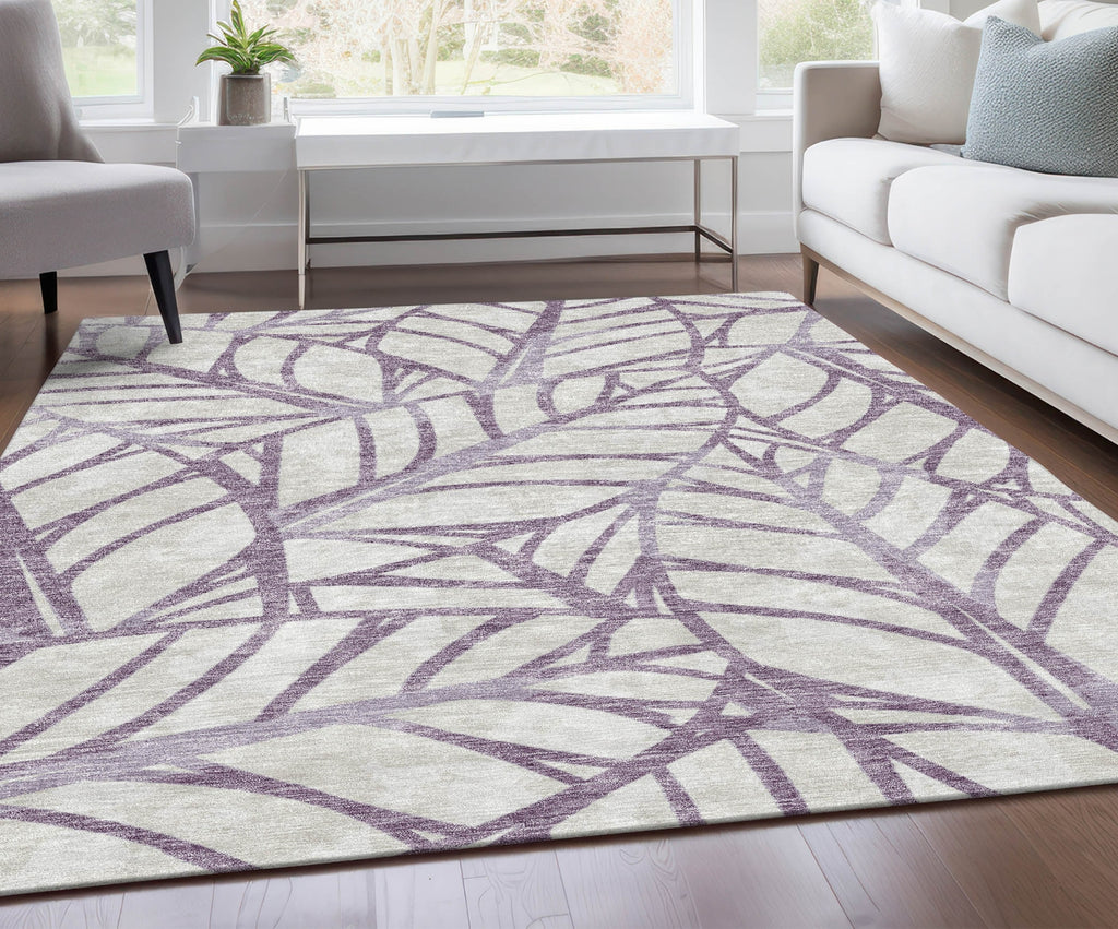 Indulge in the contemporary elegance of our rug, showcasing a floral arrangement of large-scaled leaves on an open background. This transitional design is a fusion of natural beauty and modern style, adding a unique and artistic touch to your home. It's UV stabilized for various environments, ultra-thin for a sleek profile, machine-washable for easy care, and family and pet-friendly, making it a versatile and stylish choice.