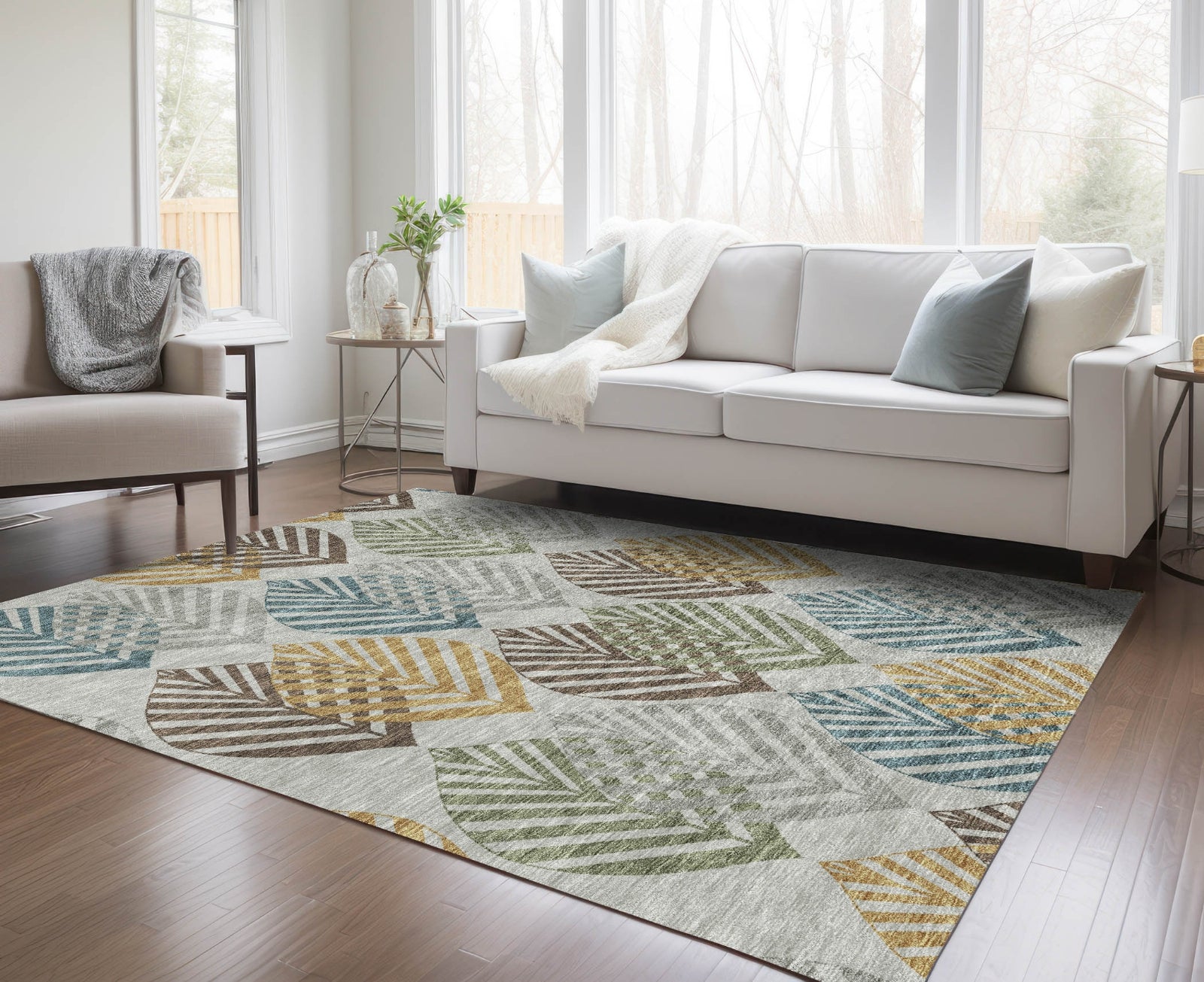 Indulge in the modern sophistication of our rug, adorned with a pattern of vertical leaves overlapping in a tranquil floral design. This transitional piece combines the beauty of nature with contemporary style, adding an artistic touch to your home. It's UV stabilized for varied use, ultra-thin for a sleek profile, machine-washable for easy care, and family and pet-friendly, making it an ideal addition to any stylish abode.