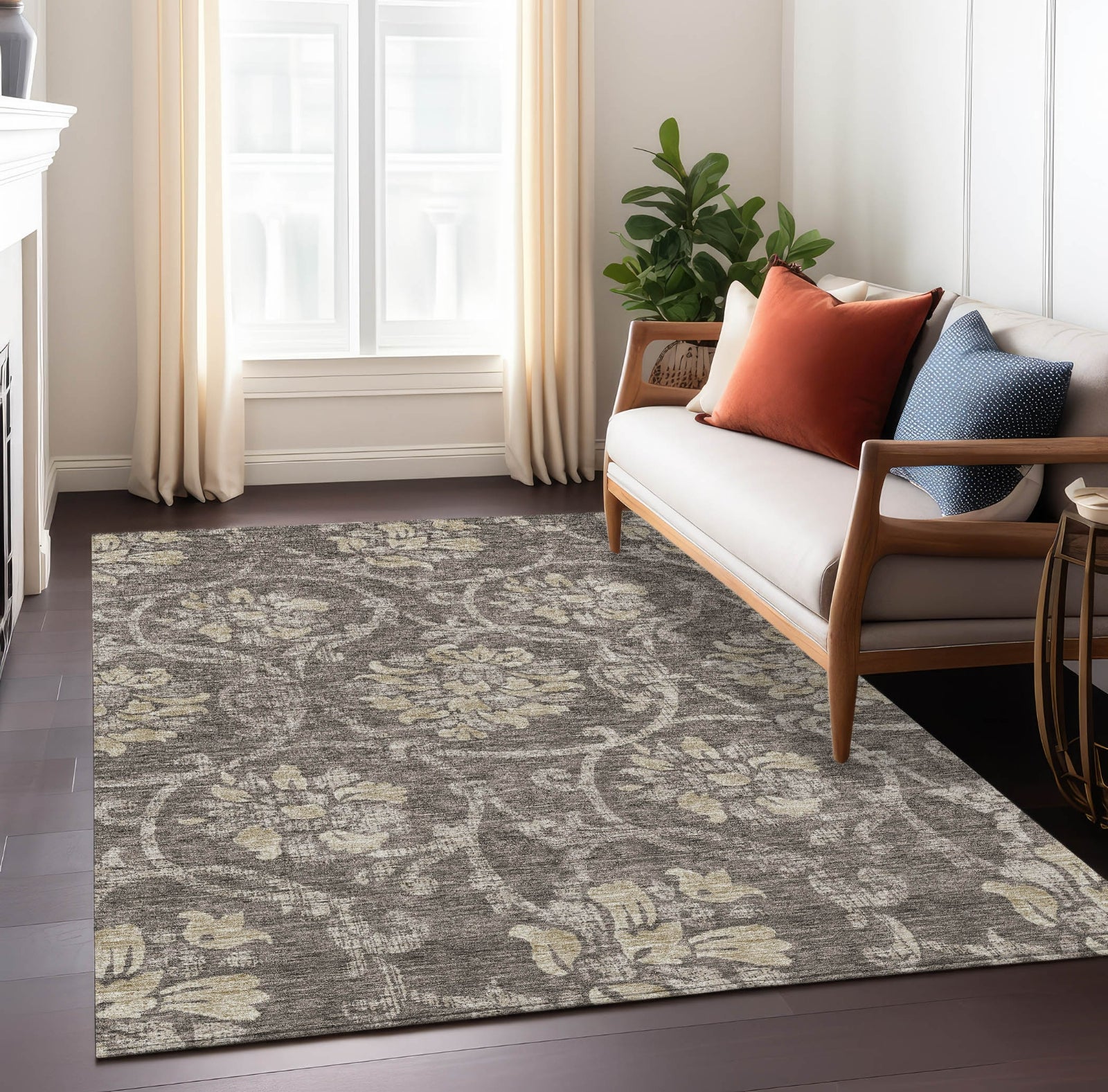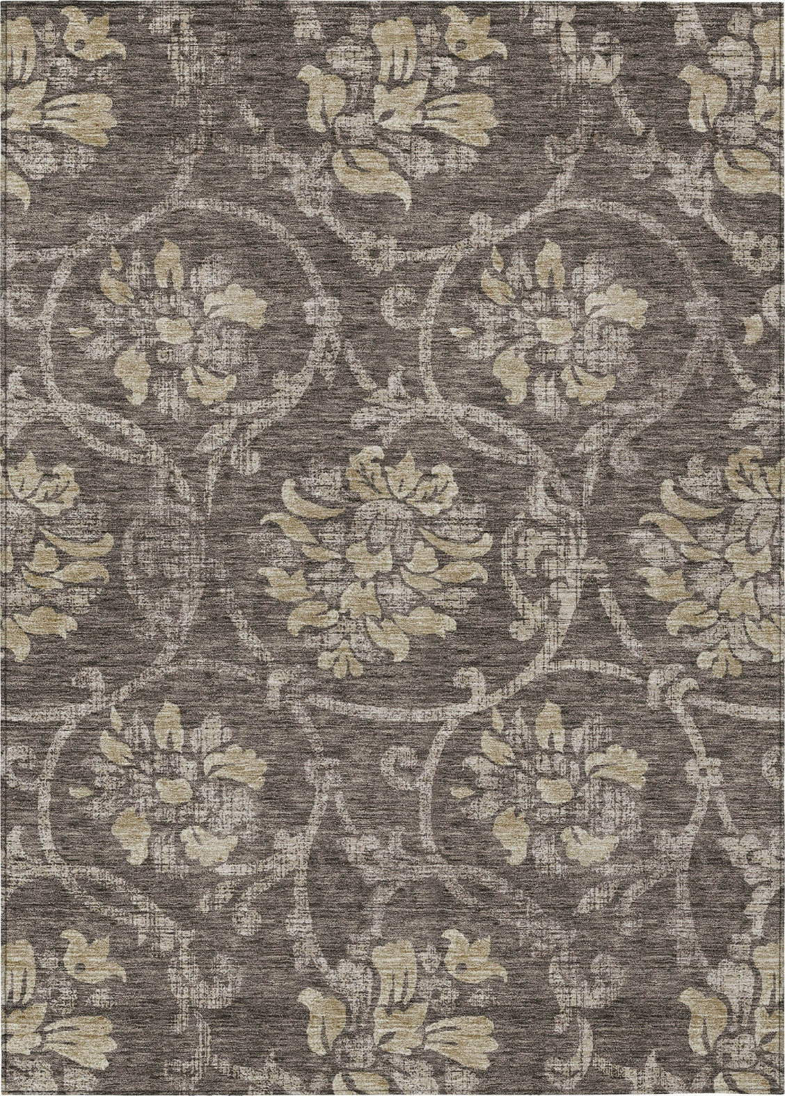 Piper Looms Chantille Floral ACN762 Brown Machine Washable Area Rug