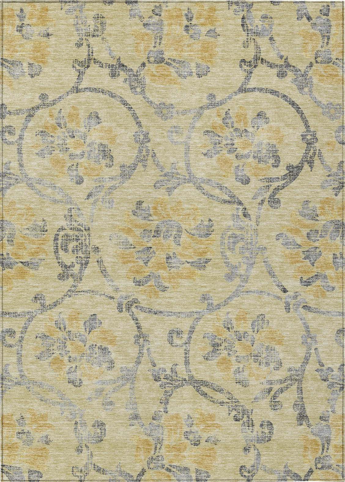 Piper Looms Chantille Floral ACN762 Gold Machine Washable Area Rug