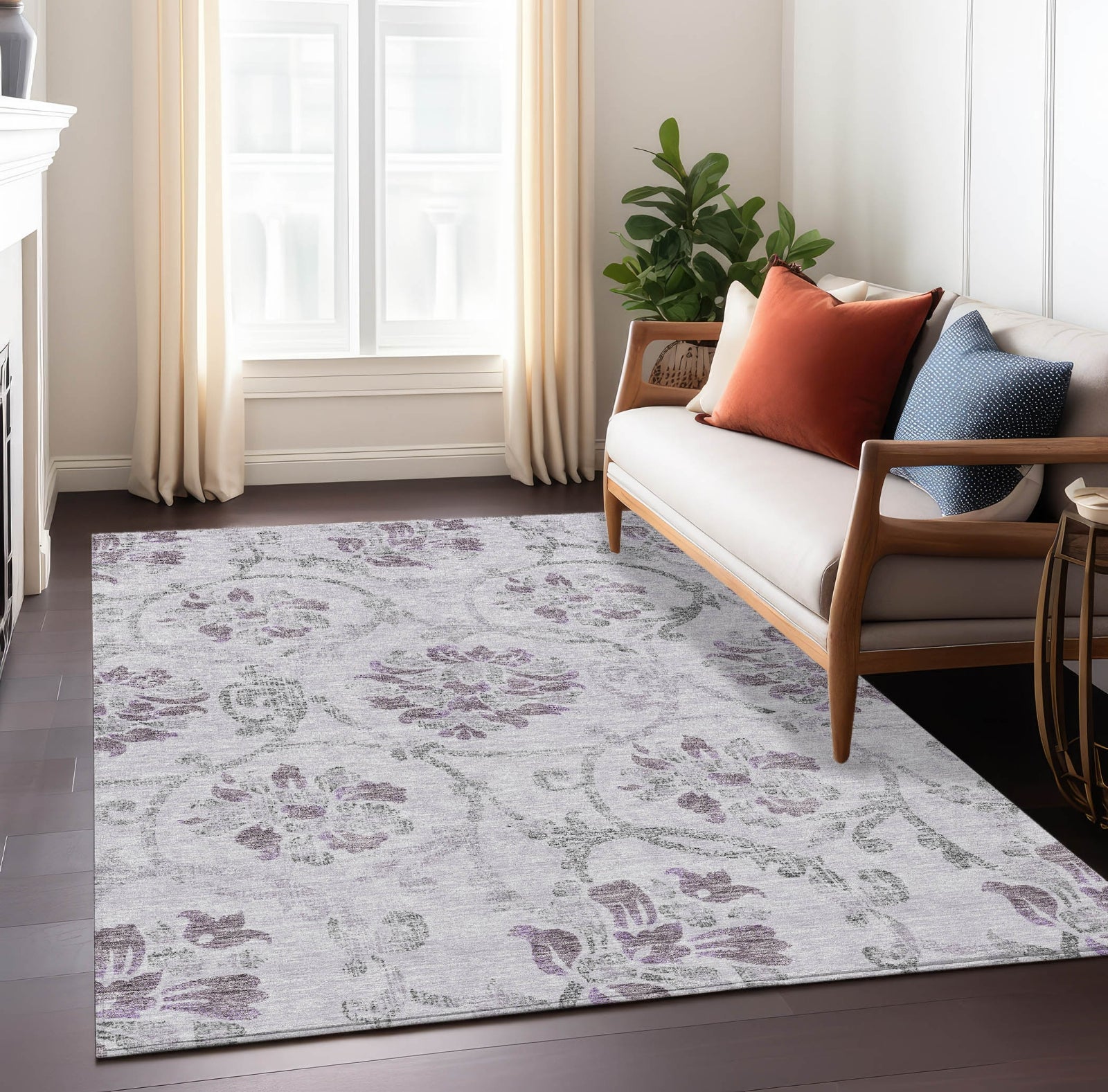 Piper Looms Chantille Floral ACN762 Lavender Machine Washable Area Rug