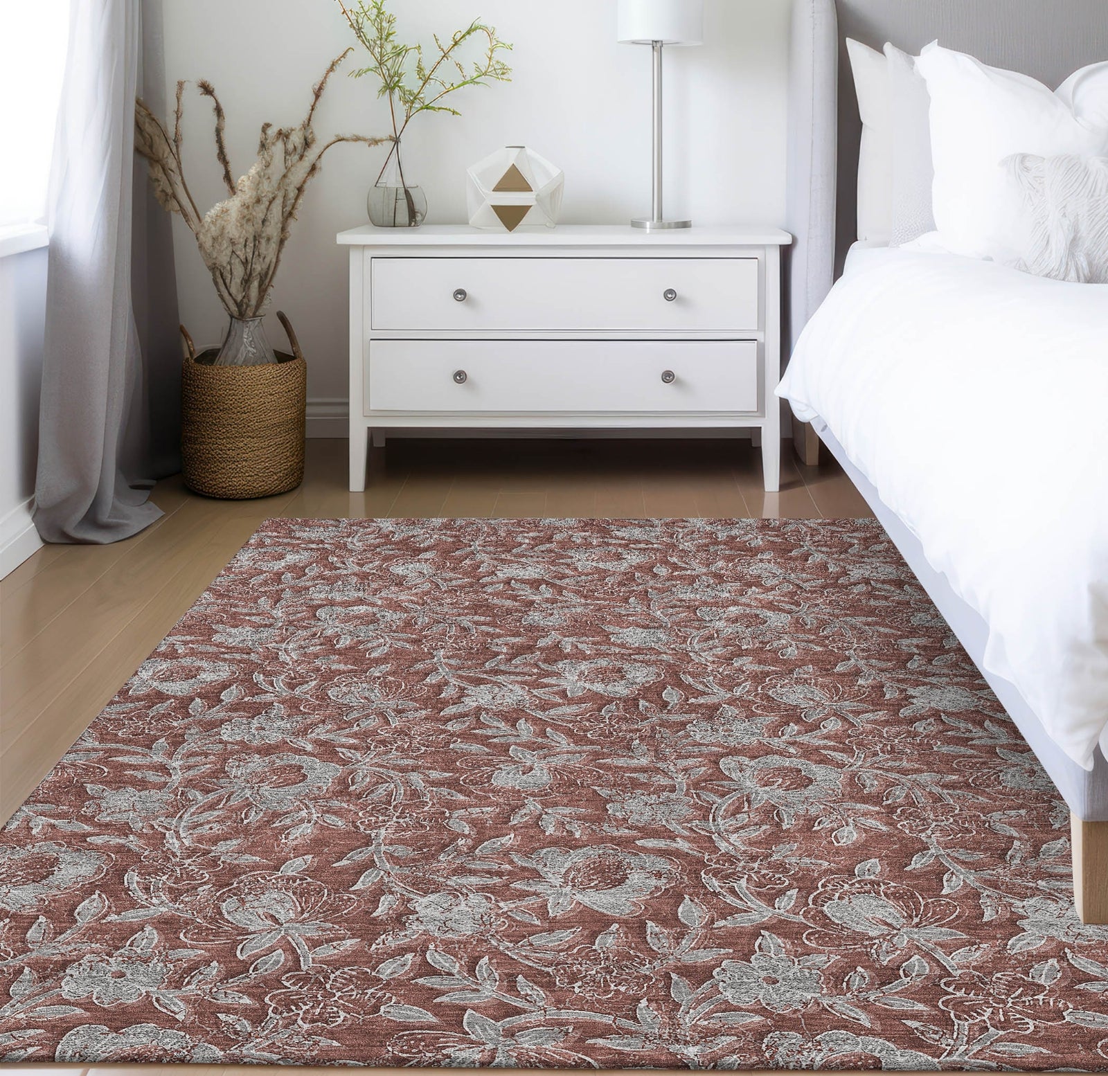 Piper Looms Chantille Floral ACN771 Paprika Machine Washable Area Rug