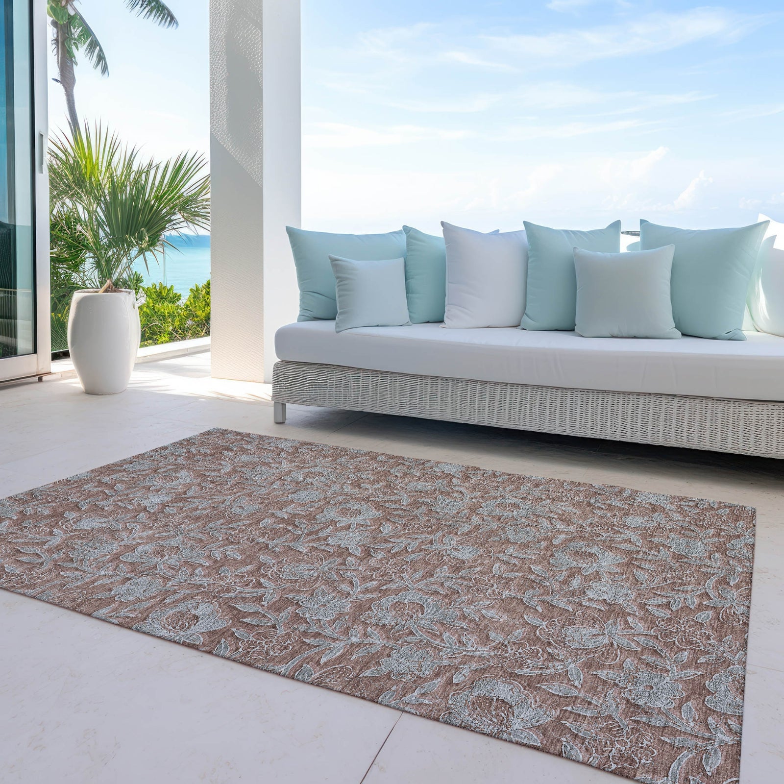 The floral pattern on this rug is artfully scaled to highlight the intricate details of petals and leaves, creating a captivating, natural ambiance. This transitional piece complements a range of decor styles, adding a touch of floral elegance to any setting. It's UV stabilized for multiple environments, ultra-thin for contemporary settings, machine-washable for easy maintenance, and suitable for families and pets.