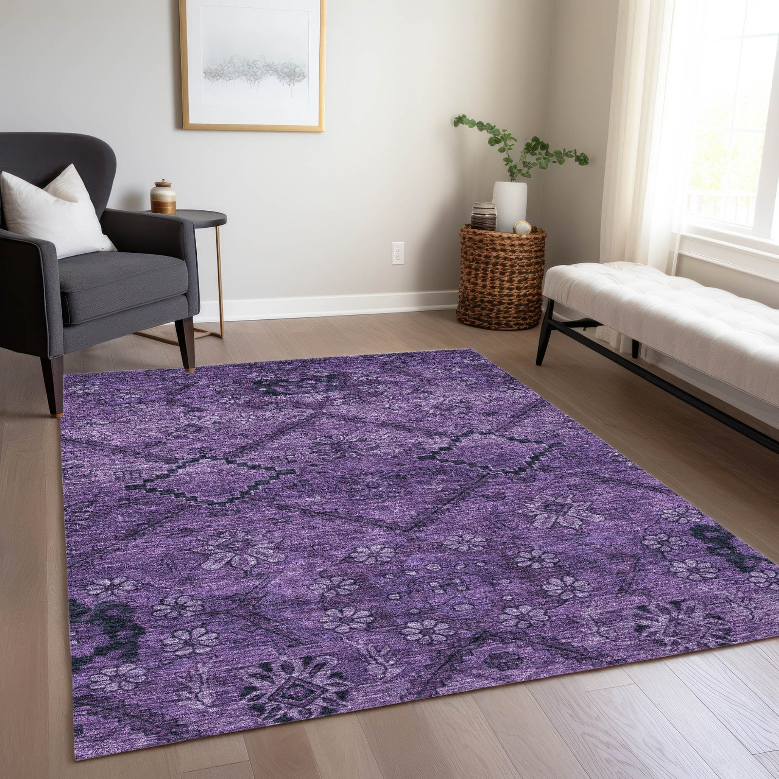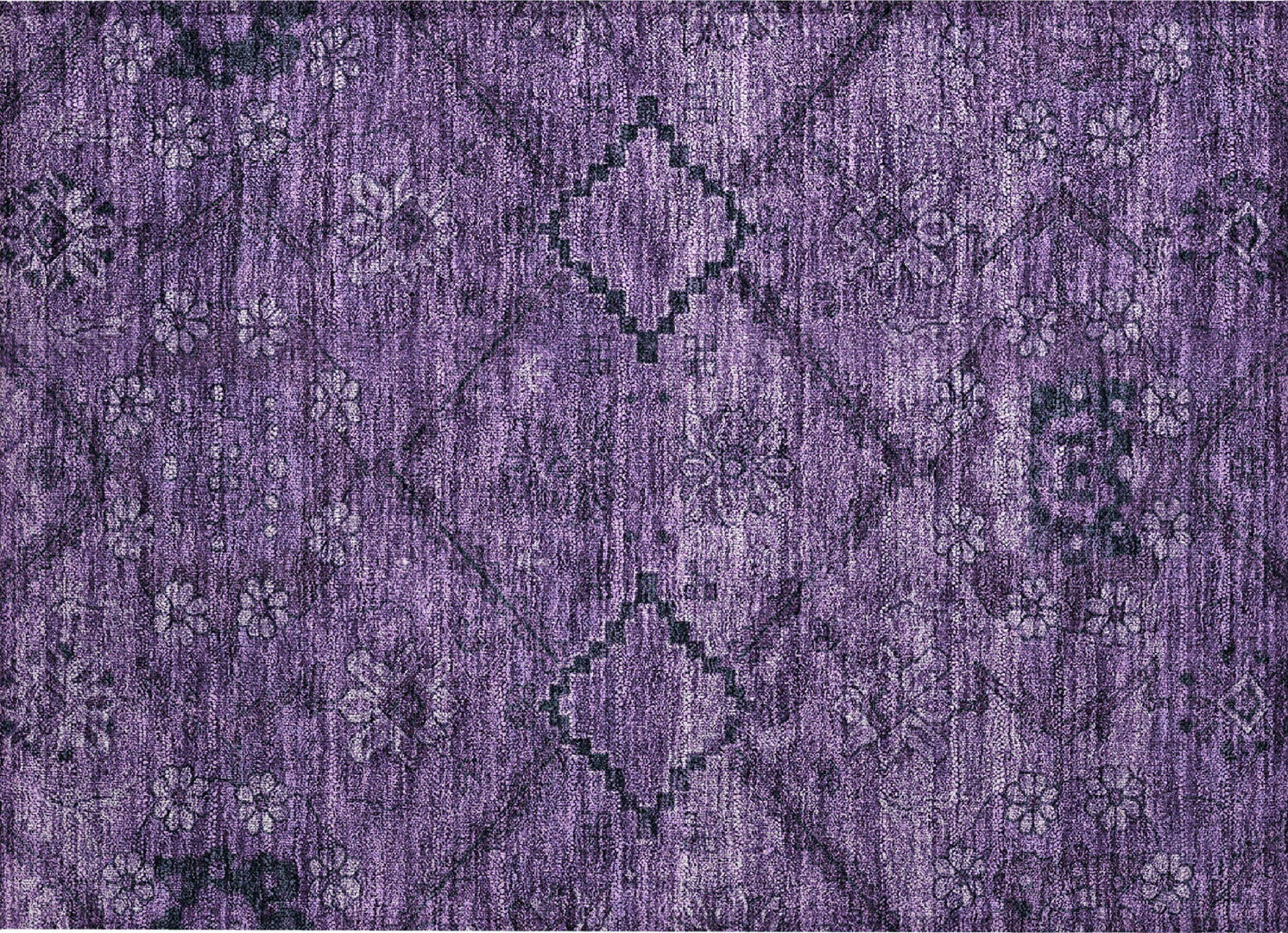 Piper Looms Chantille Floral ACN842 Eggplant Machine Washable Area Rug