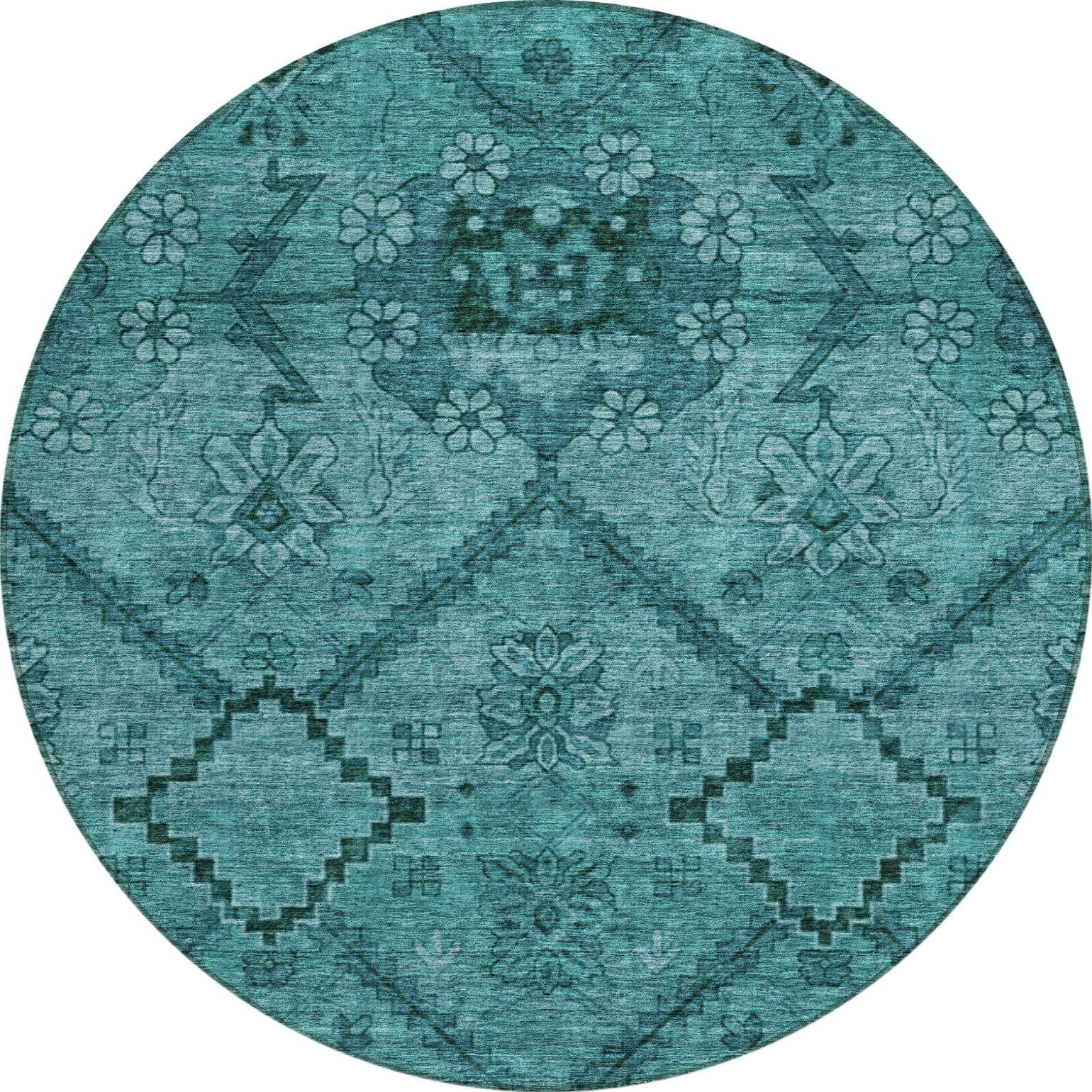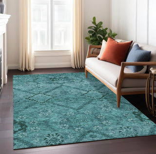 Piper Looms Chantille Floral ACN842 Teal Machine Washable Area Rug