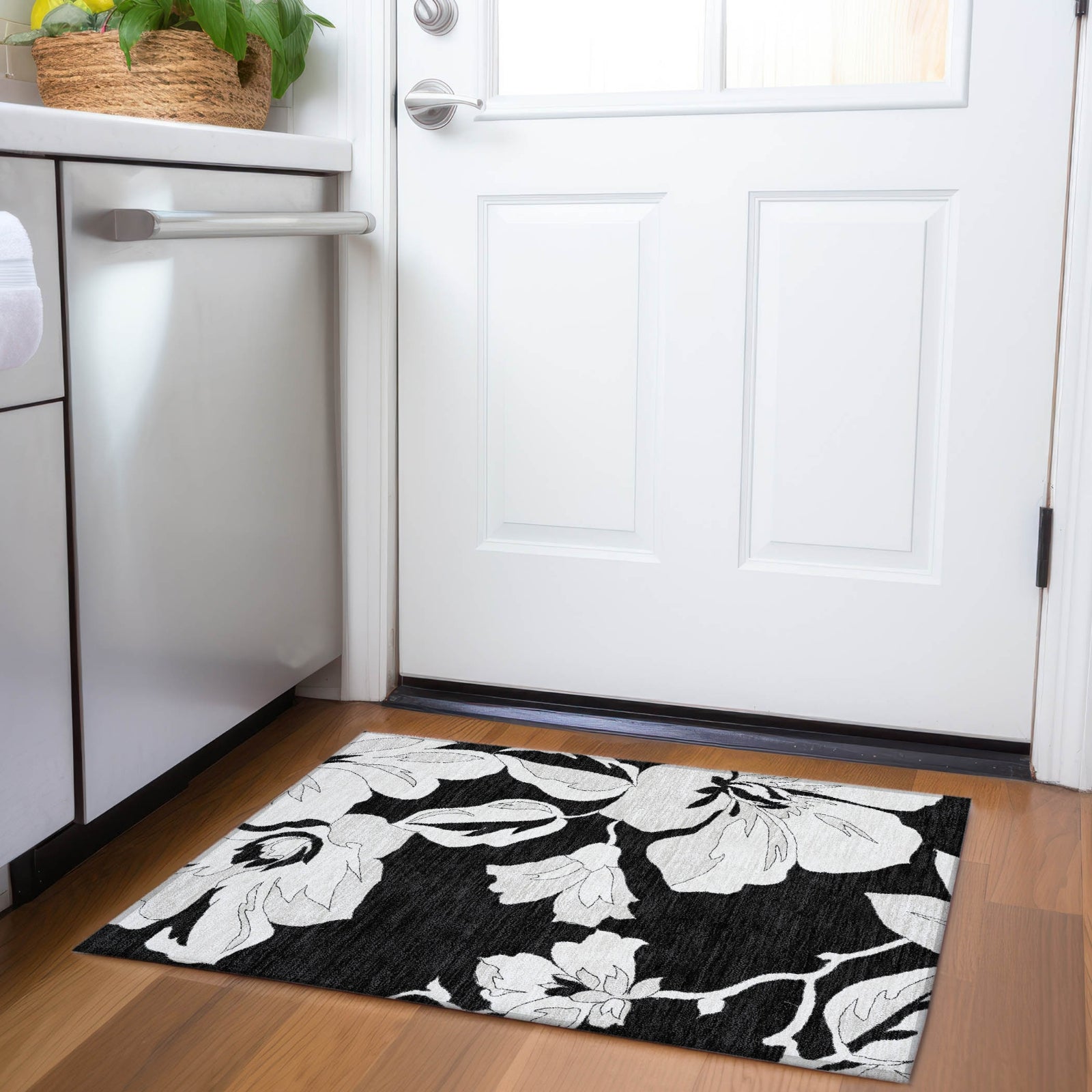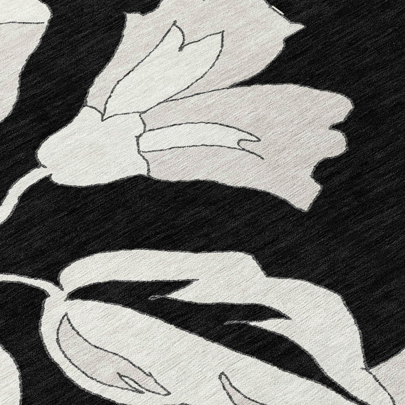 Piper Looms Chantille Floral ACN857 Black Machine Washable Area Rug