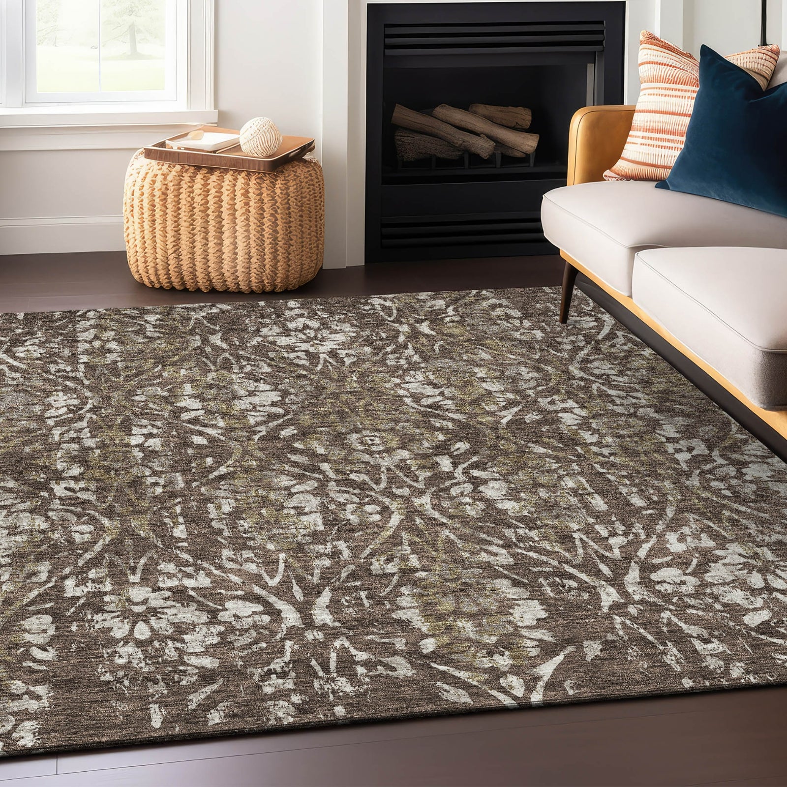 Bring a sense of luxury to your home with this area rug, adorned with transitional florals that create a formal and inviting ambiance. The floral pattern is both versatile and stylish, suitable for any decor. Along with its aesthetic appeal, this rug is practical, featuring UV stabilization for versatility, ultra-thin construction for easy placement, and machine-washable fabric for convenient cleaning. It's also family and pet-friendly, making it an ideal choice for contemporary living.