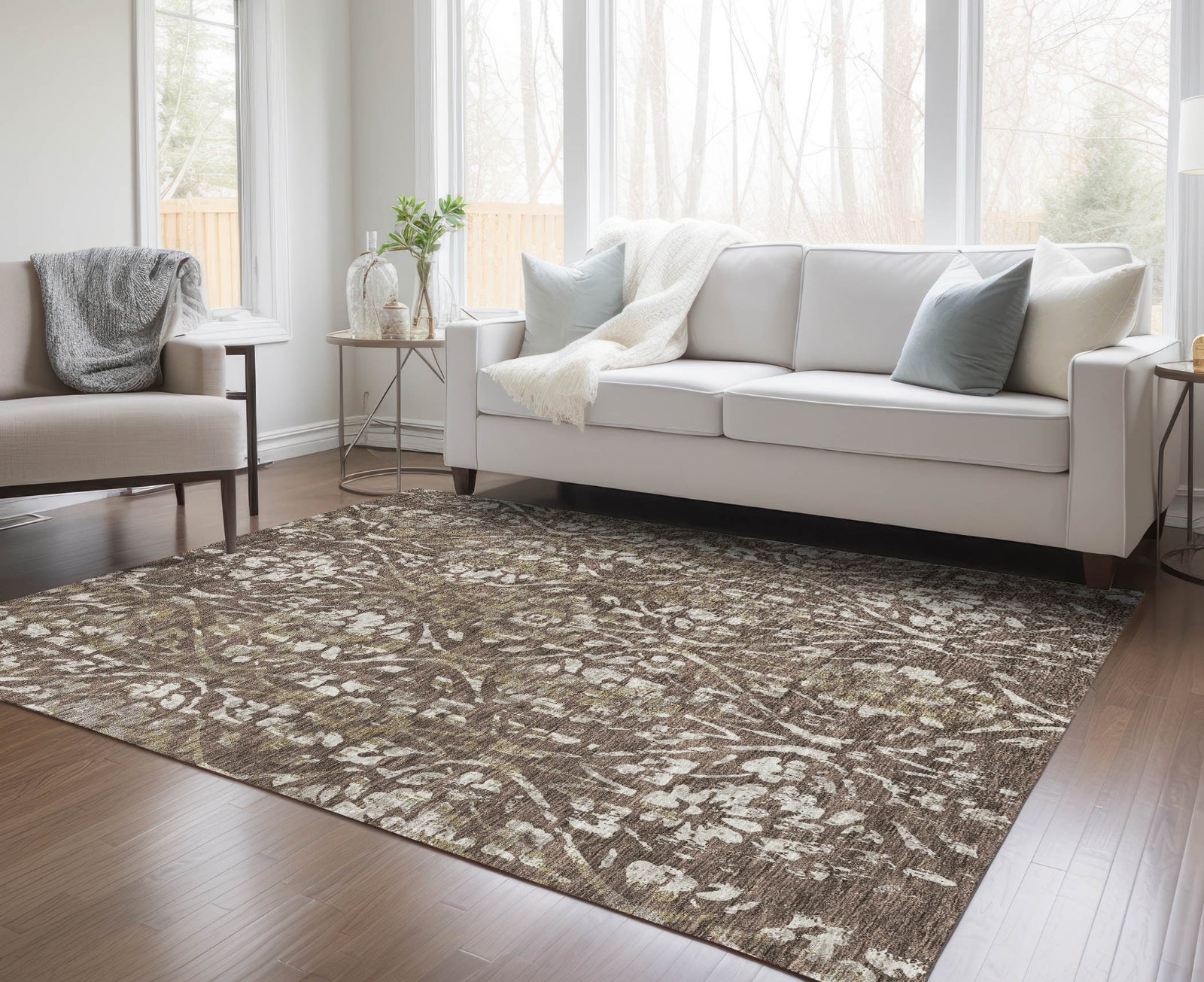 Piper Looms Chantille Floral ACN868 Brown Machine Washable Area Rug