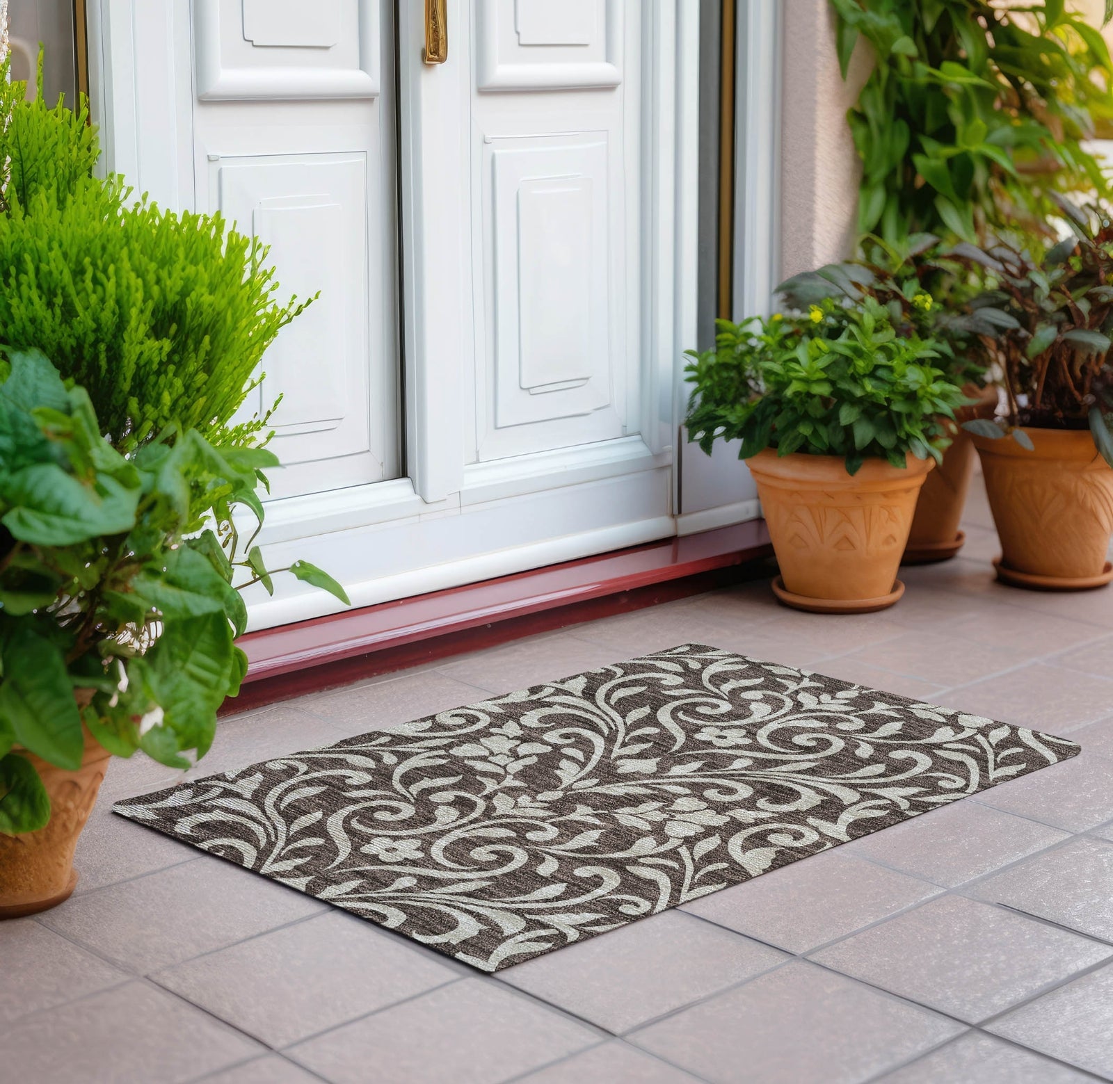 Piper Looms Chantille Floral ACN875 Chocolate Machine Washable Area Rug