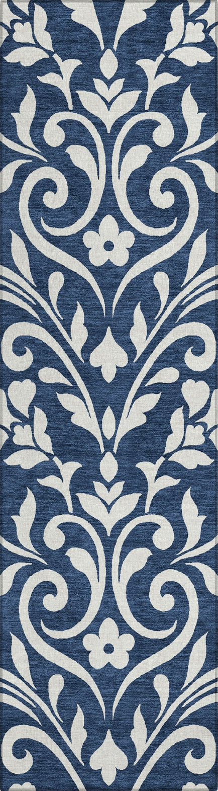 Piper Looms Chantille Floral ACN875 Navy Machine Washable Area Rug
