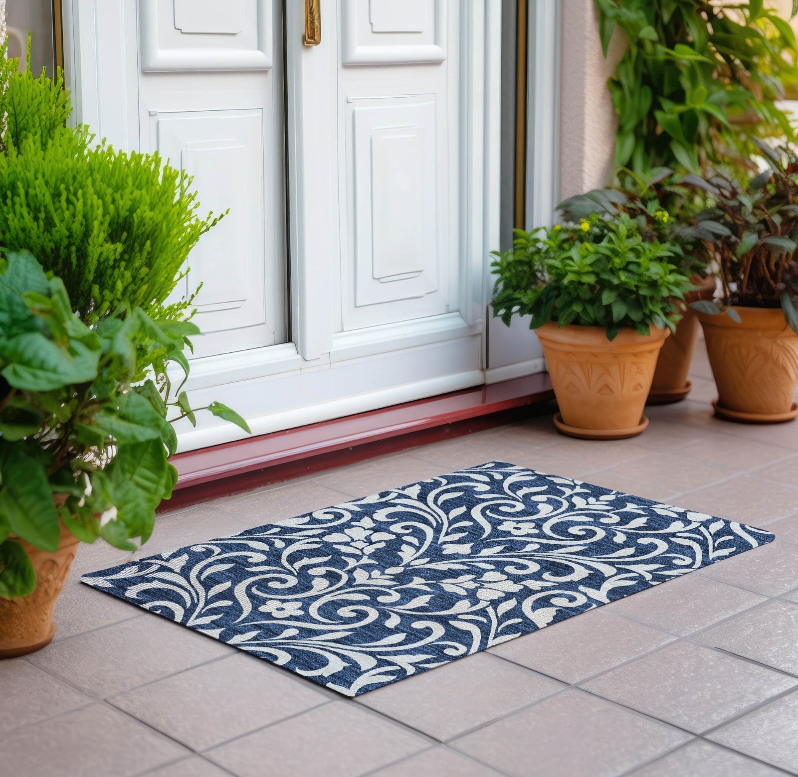 Bring a touch of nature indoors with our area rug, featuring a modern floral pattern of stems, leaves, and vines. The transitional floral design effortlessly bridges the gap between traditional and modern decor. Its UV stabilization guarantees durability indoors and outdoors. The ultra-thin construction is an asset for any room, and its machine-washable nature makes it a practical choice for families and pet owners.