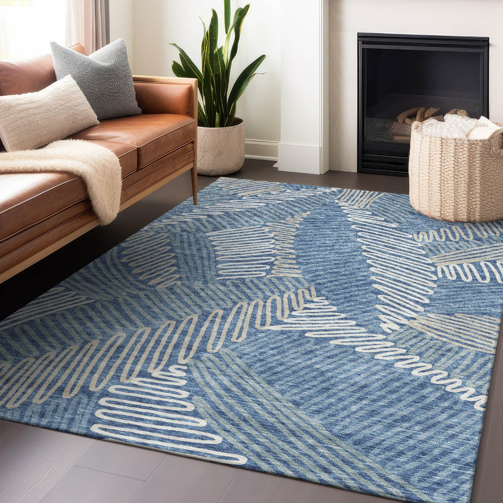Piper Looms Chantille Floral ACN904 Blue Machine Washable Area Rug