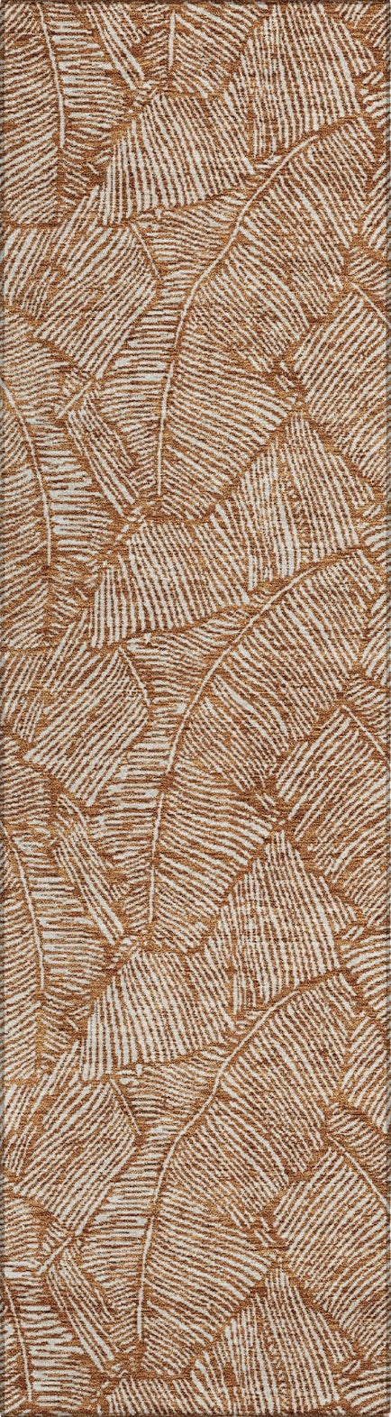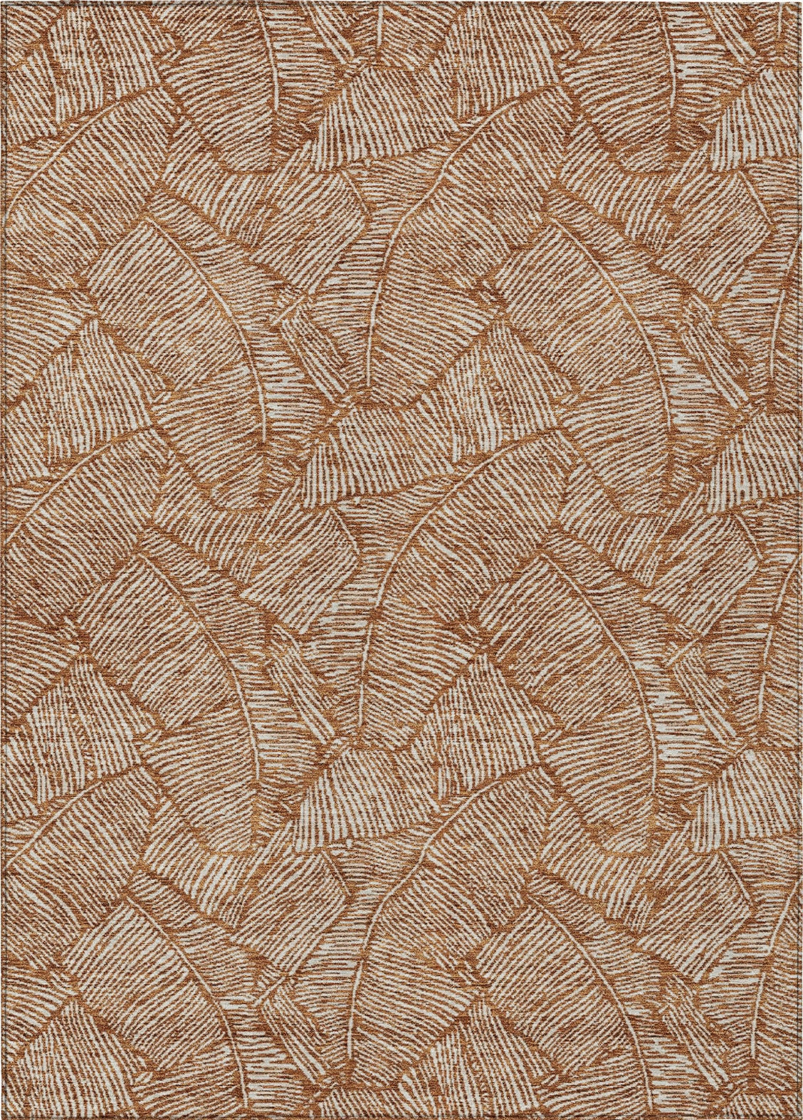 The area rug's design features large scaled leaves in a monotone colorway, infusing a transitional and floral elegance into your home. Its UV stabilization makes it suitable for both indoor and outdoor use, while the ultra-thin construction makes it a versatile addition to any room. The rug's machine-washable quality also makes it a great choice for households with pets and kids.