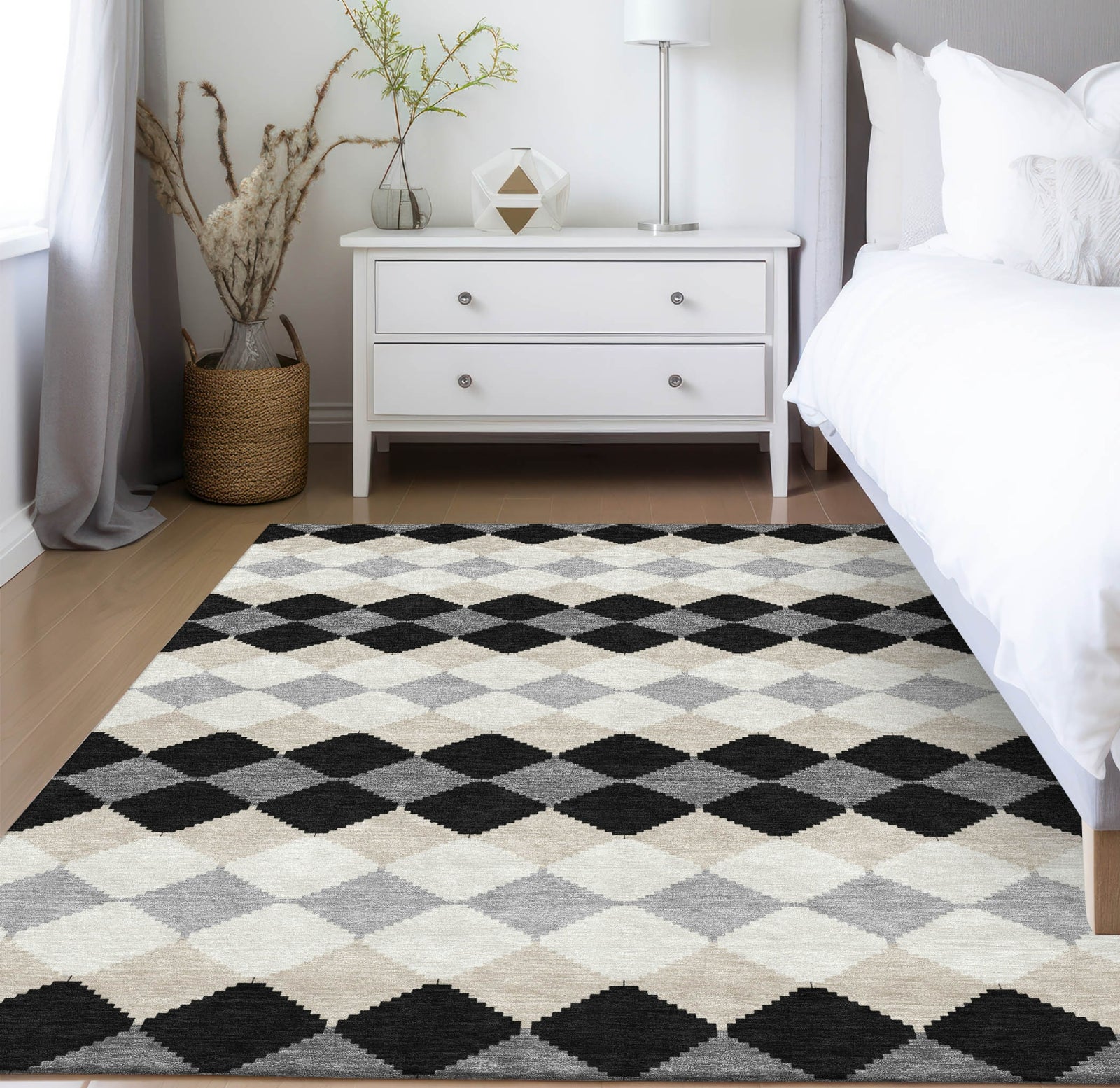 Piper Looms Chantille Geometric ACN1007 Black Machine Washable Area Rug