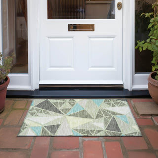 Transform your home with our area rug, which features a sophisticated geometric pattern with multi-shaped triangles, ideal for anyone looking to update their decor with a transitional touch. This rug is practical as well, with UV stabilization for indoor/outdoor use, an ultra-thin design for simplicity, machine-washable fabric for easy maintenance, and a family and pet-friendly build.