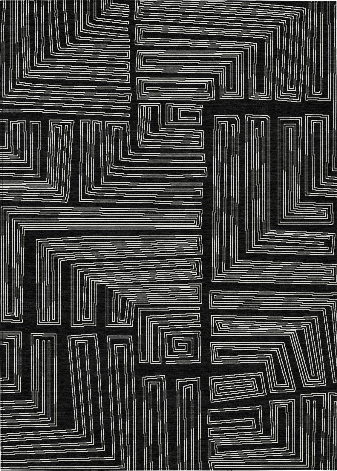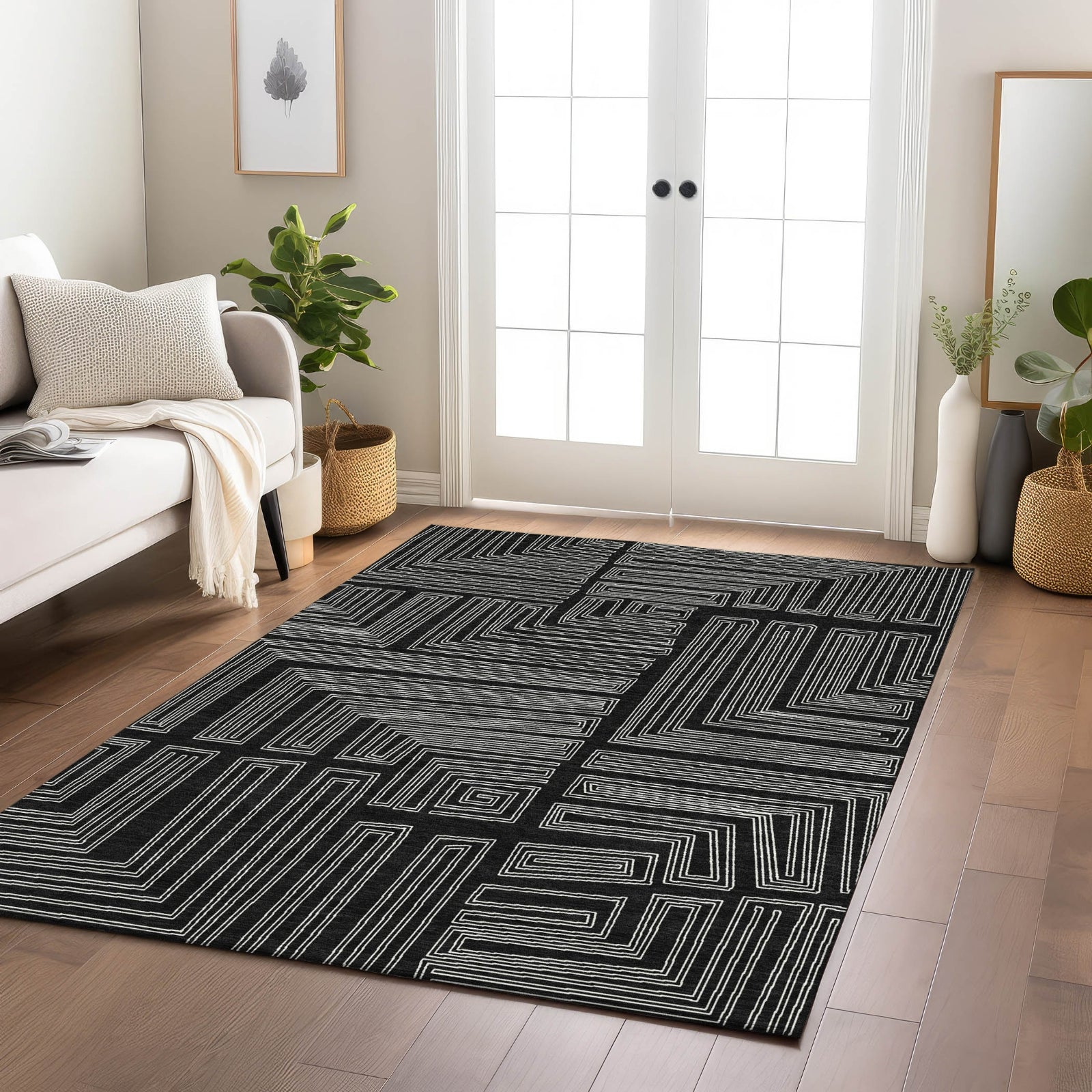 Piper Looms Chantille Geometric ACN1045 Black Machine Washable Area Rug